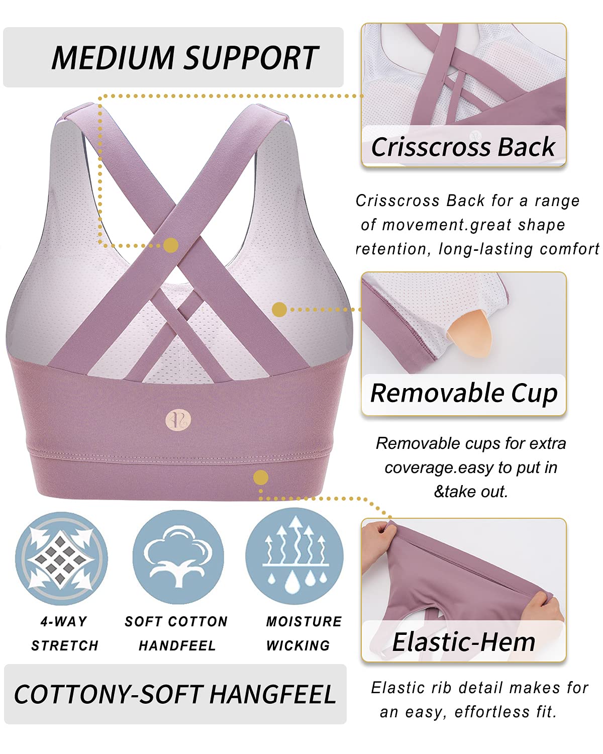 WHAT CAN WE OFFER YOU : Moisture-wicking Technology Metial Which Mean that You Can Enjoy Keeping Your Body Cool & Dry. Super Soft Elastic Band for Comfort & Movement Which Will Allow You Can Enjoy Sinking into Your Practice without Sacrificing Comfort. Built for Mid-Impact Support so You Will Get Staying Fit & Focused .We Wear-tested by Our In-house Team for the Perfect Fit , Goodbye Old Bra !!