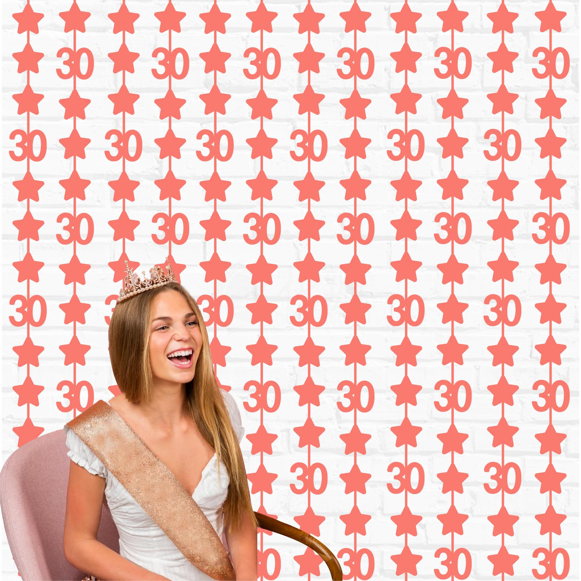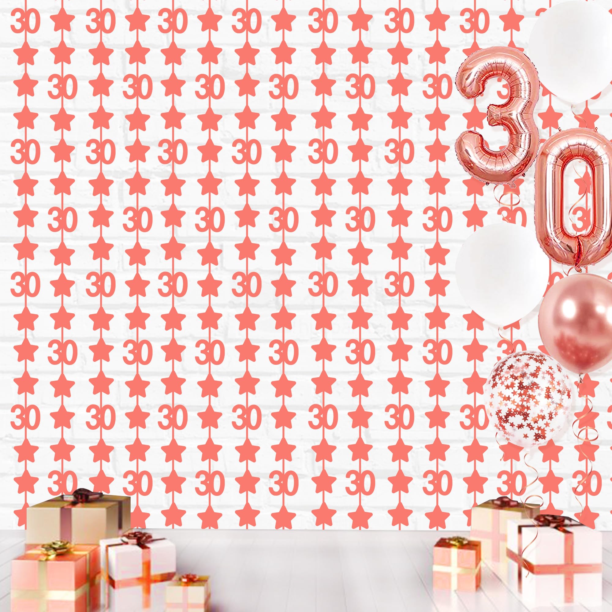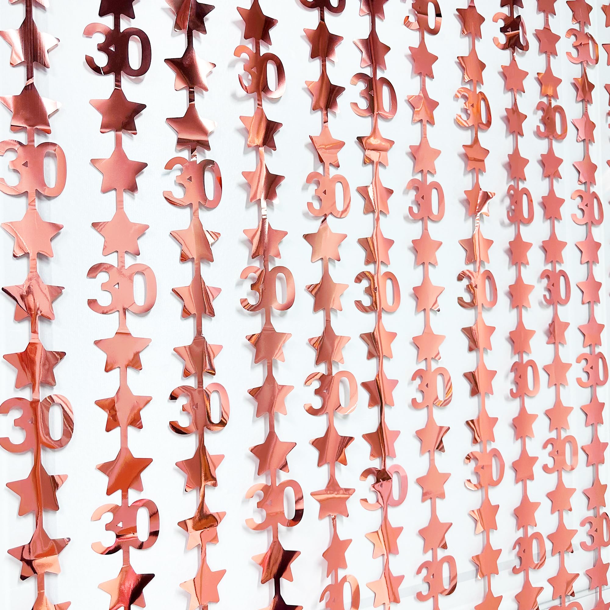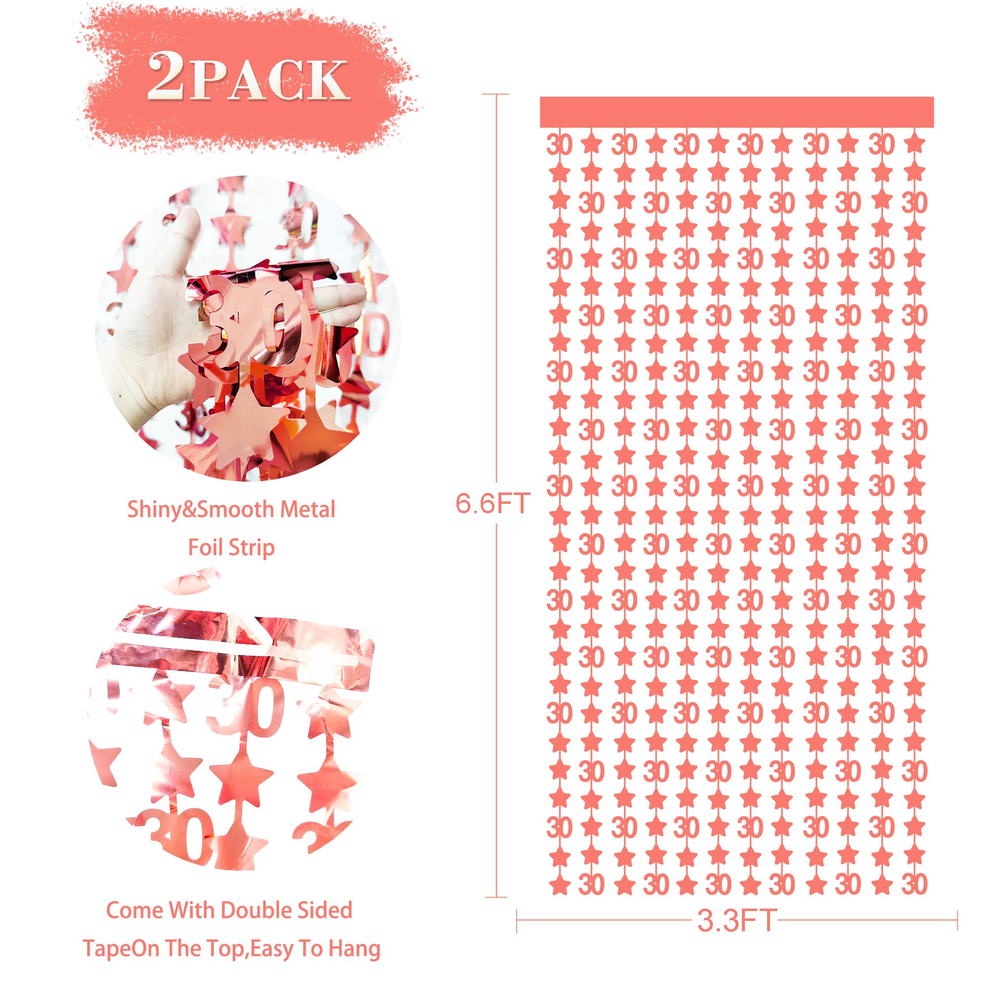 Package includes: 2 pack rose gold number 30 sparkling twinkle star foil fringe curtains party photo backdrop, each curtain size is 3.3ft x 6.6ft(about 1m x 2m), perfect photo backdrop for 30th birthday/anniversary parties.