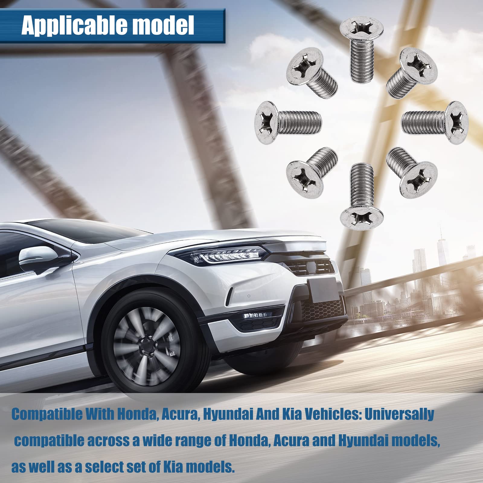 Made From Premium Materials At A Great Value: Made from premium stainless steel, these retaining screws will never rust and will not wear out. Compatible With Honda, Acura, Hyundai And Kia Vehicles: Universally compatible across a wide range of Honda, Acura and Hyundai models, as well as a select set of Kia models. Please note: This is an aftermarket replacement product, meeting or exceeding the quality of OEM screws (based on in-house testing)-compare to 93600-06014-0H. Please check the part number carefully before purchasing!