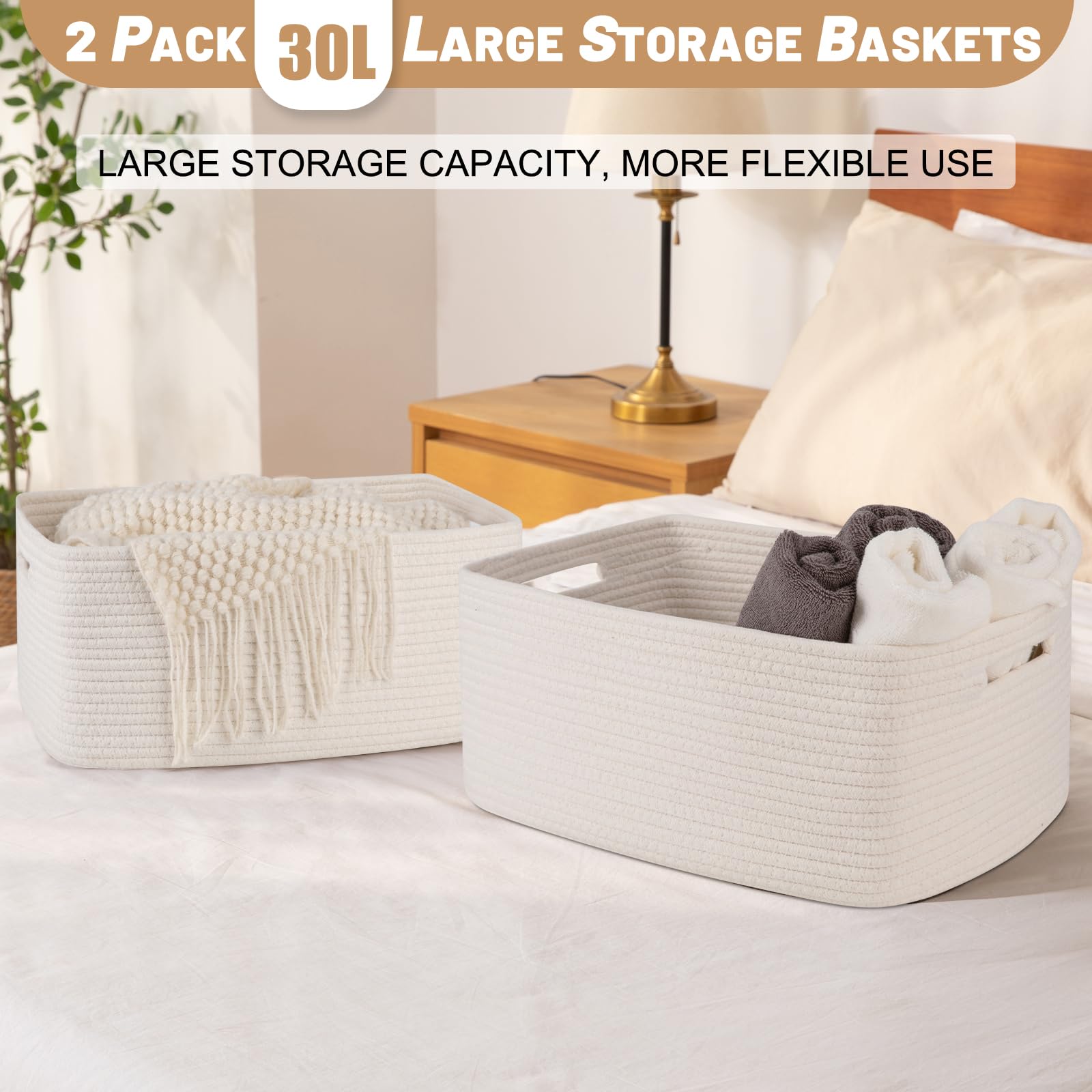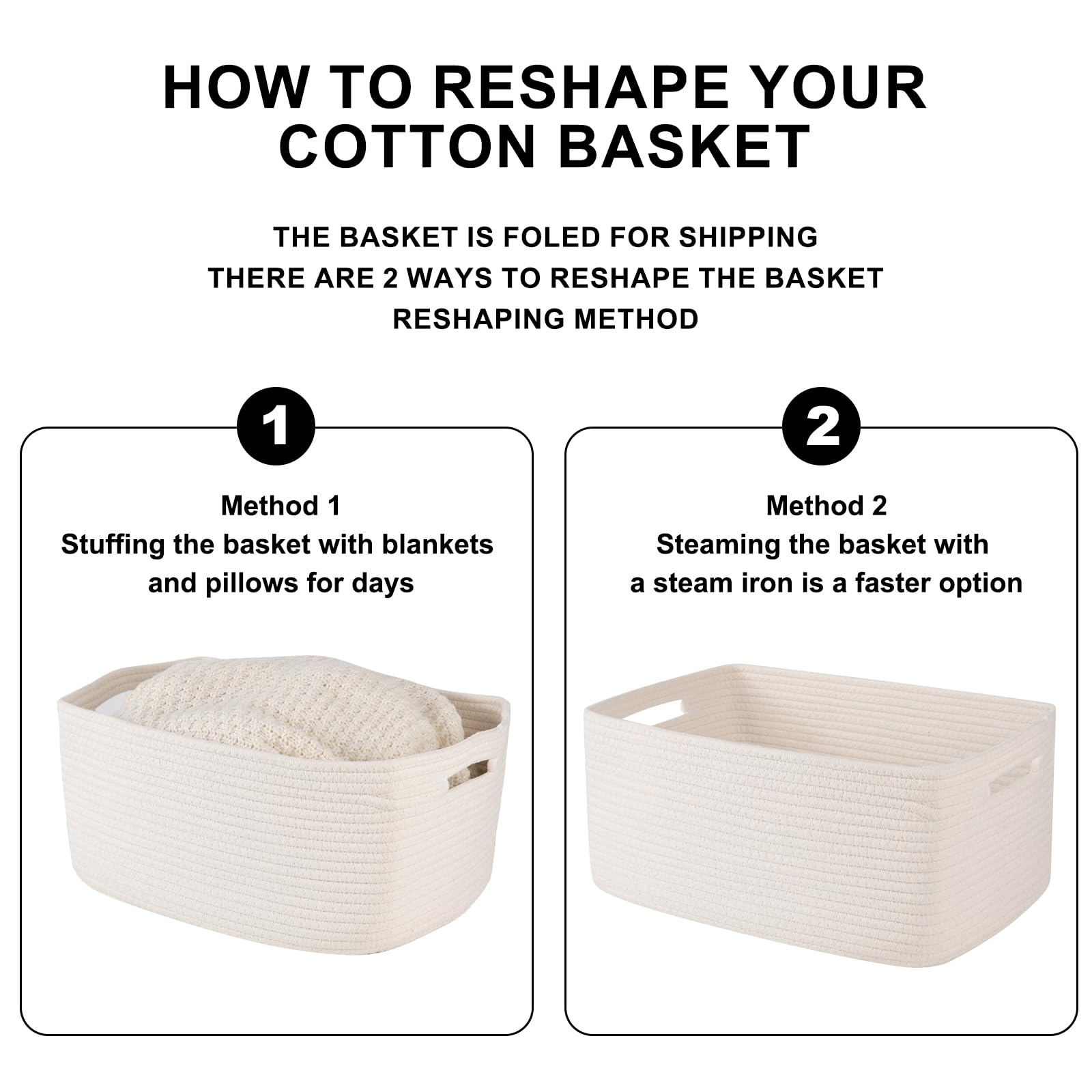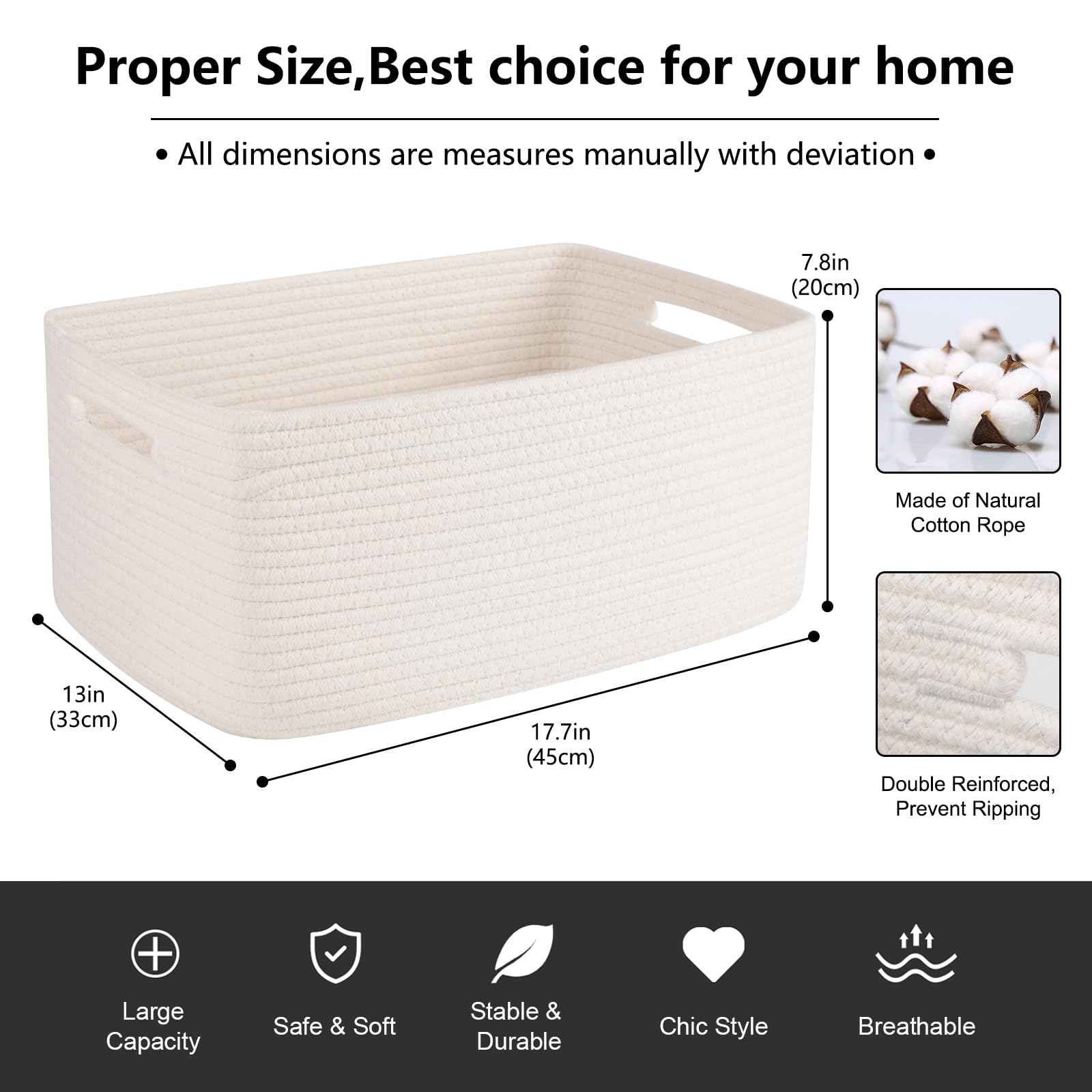 Suitable Storage Basket: The 2-Pack baskets for shelves measures 17.7 x 13 x 7.87 inches, offering ample space and easy access, which is decorated for shelf, closet, wardrobe and any table. Ideal for organizing clothes, baby items, blankets, toys, snacks, toys, diapers, and more