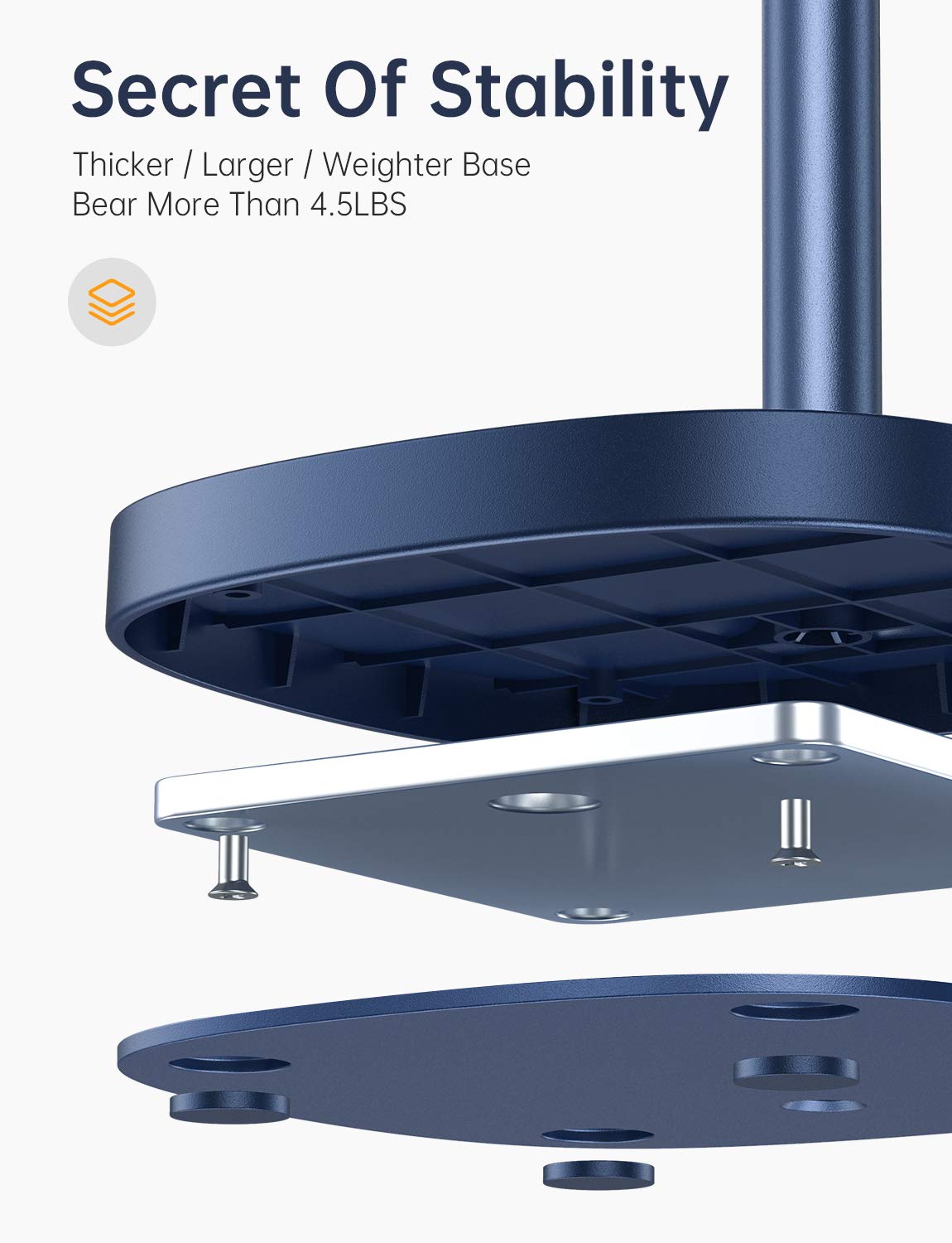 WEIGHTED ANTI-SLIP BASE: This cell phone stand for desk is equipped with a weighted base, and an aluminum alloy rod that stable fit for 2021 iPad mini stand. Therefore, this cell phone stand is stable enough to support all smartphones, such as iPhone 13 Pro, iPhone 13,12/12 Pro/12 Pro Max/12 Mini/iPhone 11/11 Pro/Max/X/MAX/XR/8/8P, Note 10/9/8/Plus, S10/S9/S8, Switch, iPad Mini,iPad Air,small tablet, etc