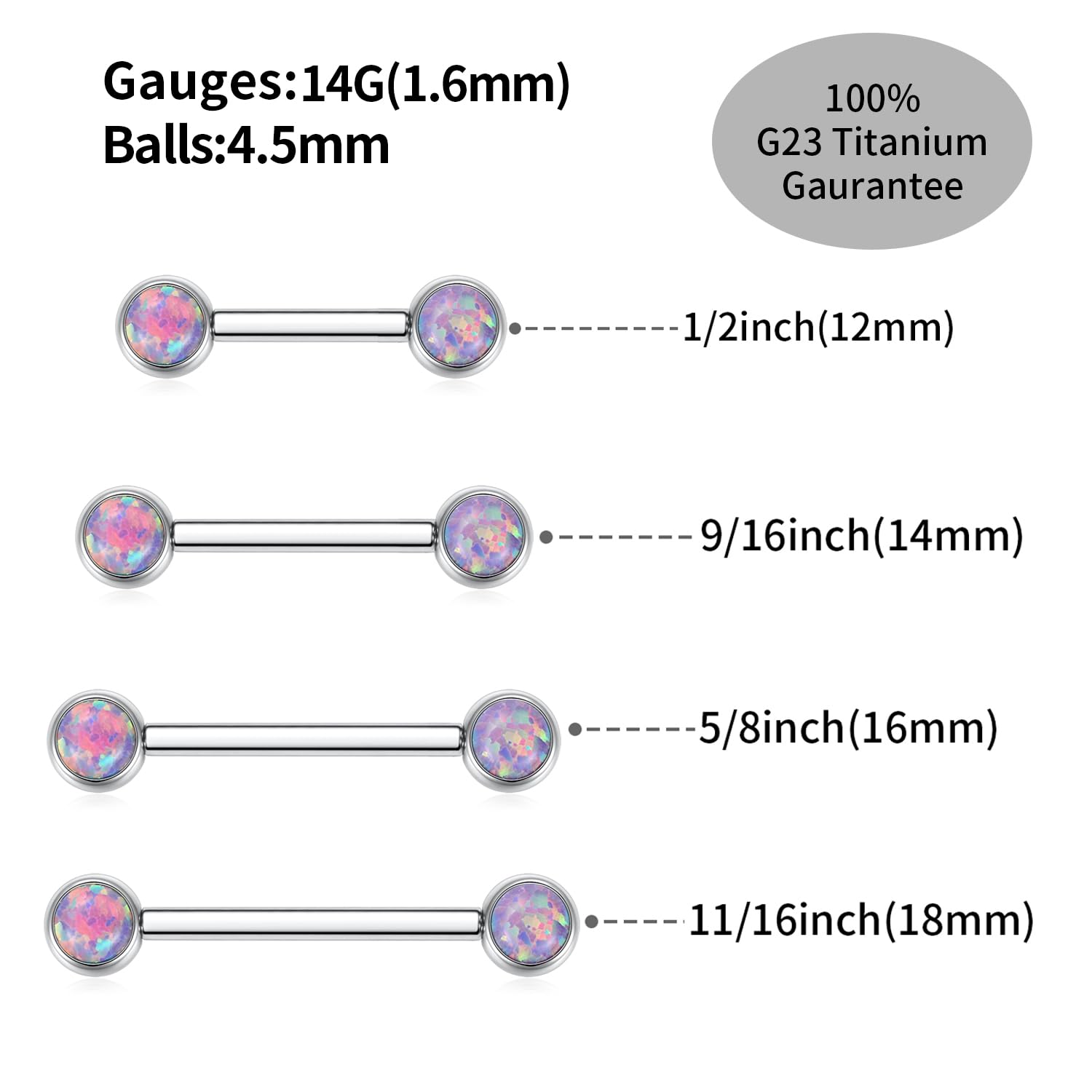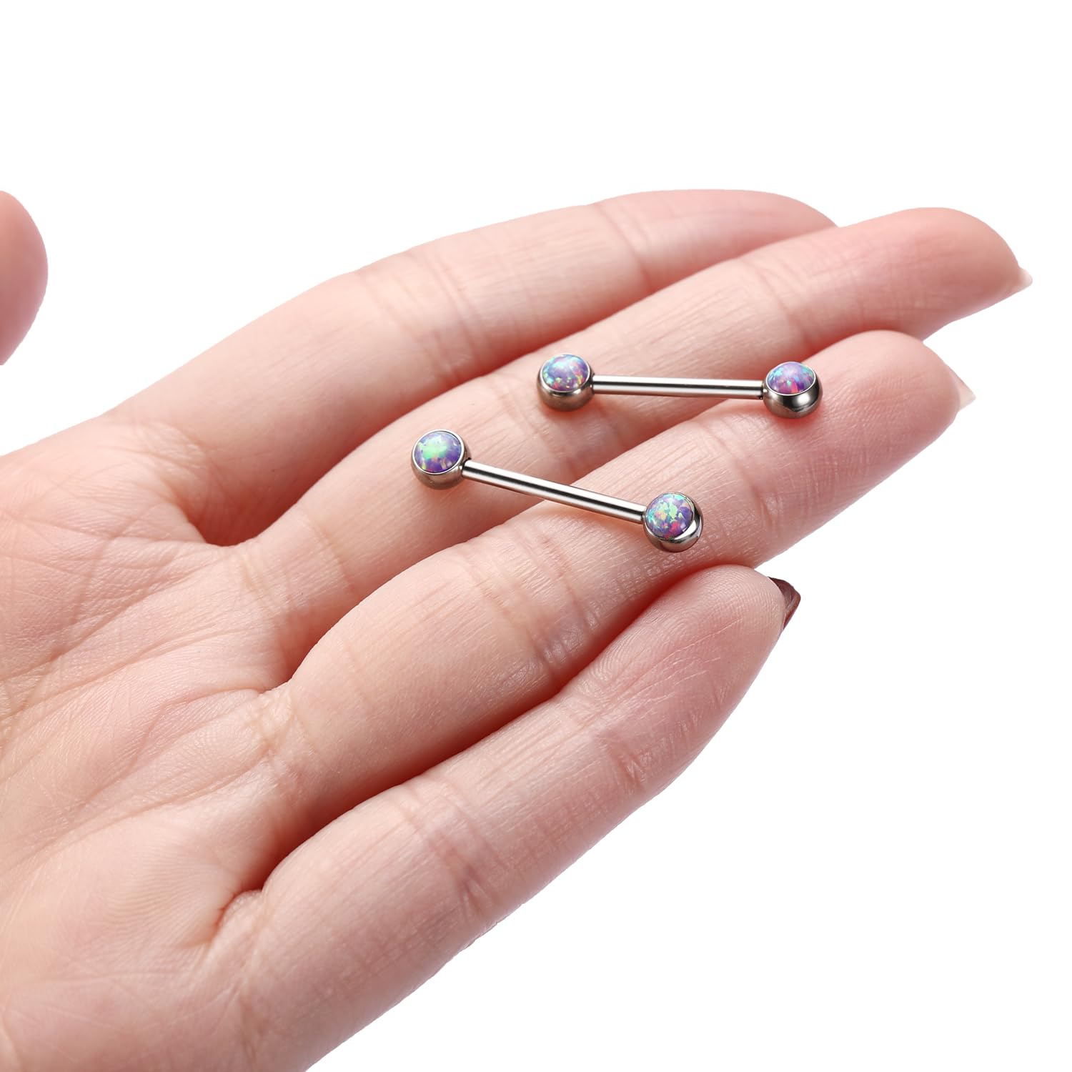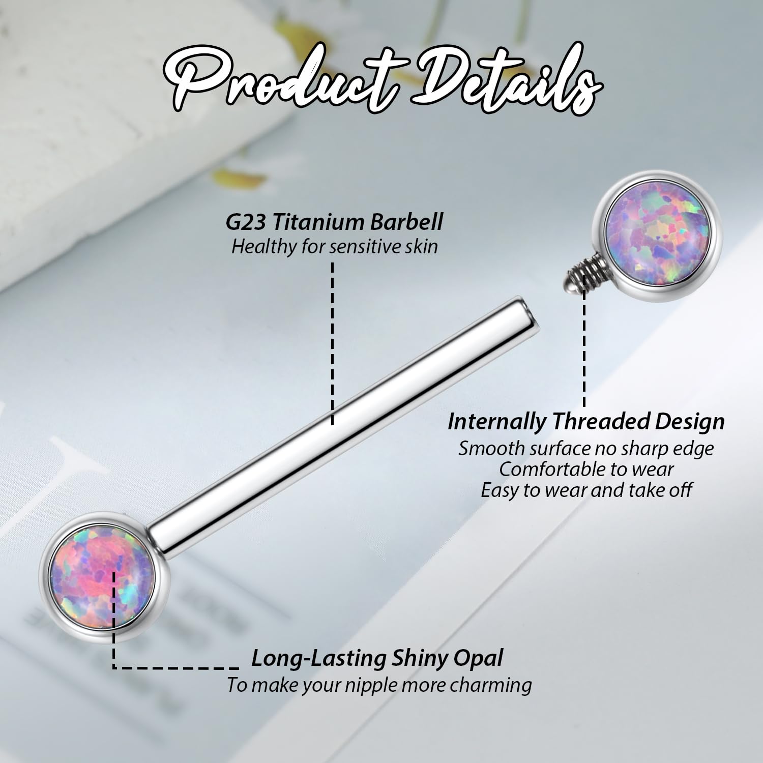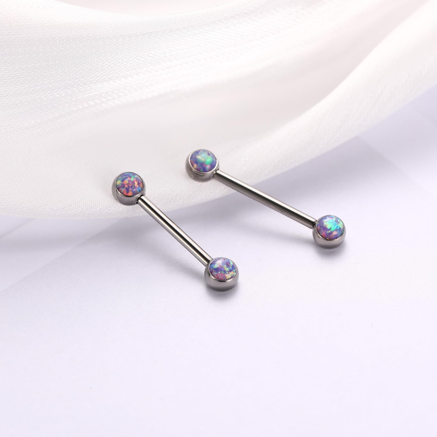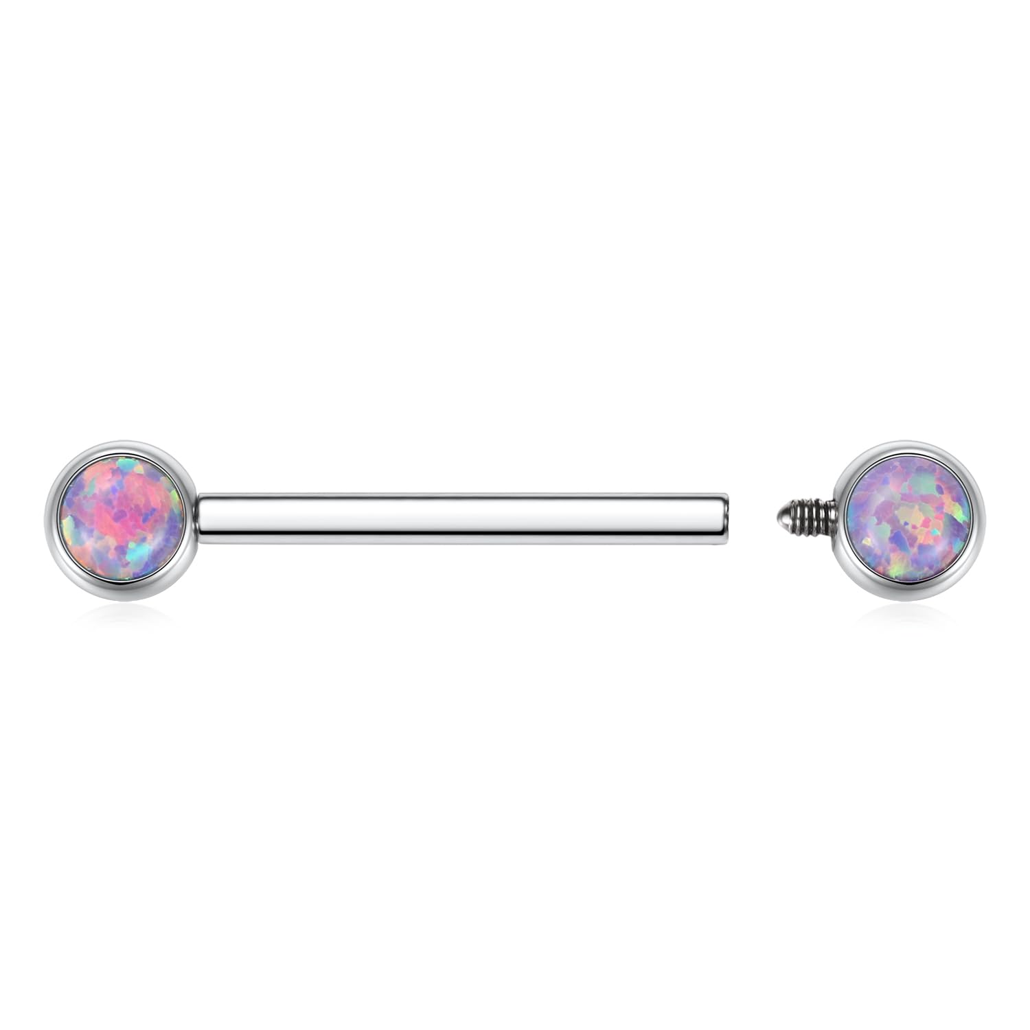 Attractive Style: The nipple ring with shiny opal on both side, internally threaded design, make your nipple piercing more attractive