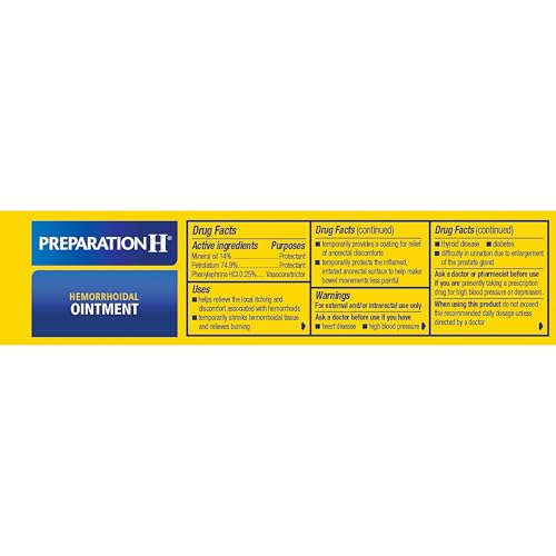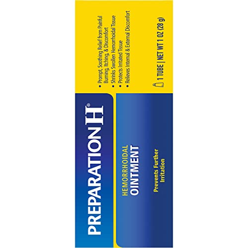 Preparation H Hemorrhoid Ointment helps relieve pain and discomfort caused by both internal and external hemorrhoids. Even mild irritation around the butt can be an uncomfortable and persistent problem. When other hemorrhoid creams aren't providing the comfort you need, this skin treatment delivers the relief you trust from Preparation H hemorrhoid care products for prompt, soothing relief from painful burning, itching and discomfort. Preparation H hemorrhoid treatment ointment provides a prompt, soothing layer of protection on the affected area while helping to shrink swollen tissue caused by hemorrhoids. Apply this itch relief ointment up to 4 times daily for hemorrhoid care. Be sure to clean the applicator after each internal use. Get comfortable with it, with hemorrhoid relief from Preparation H, the number 1 doctor recommended brand for hemorrhoid treatment (1). (1) Among OTC brands