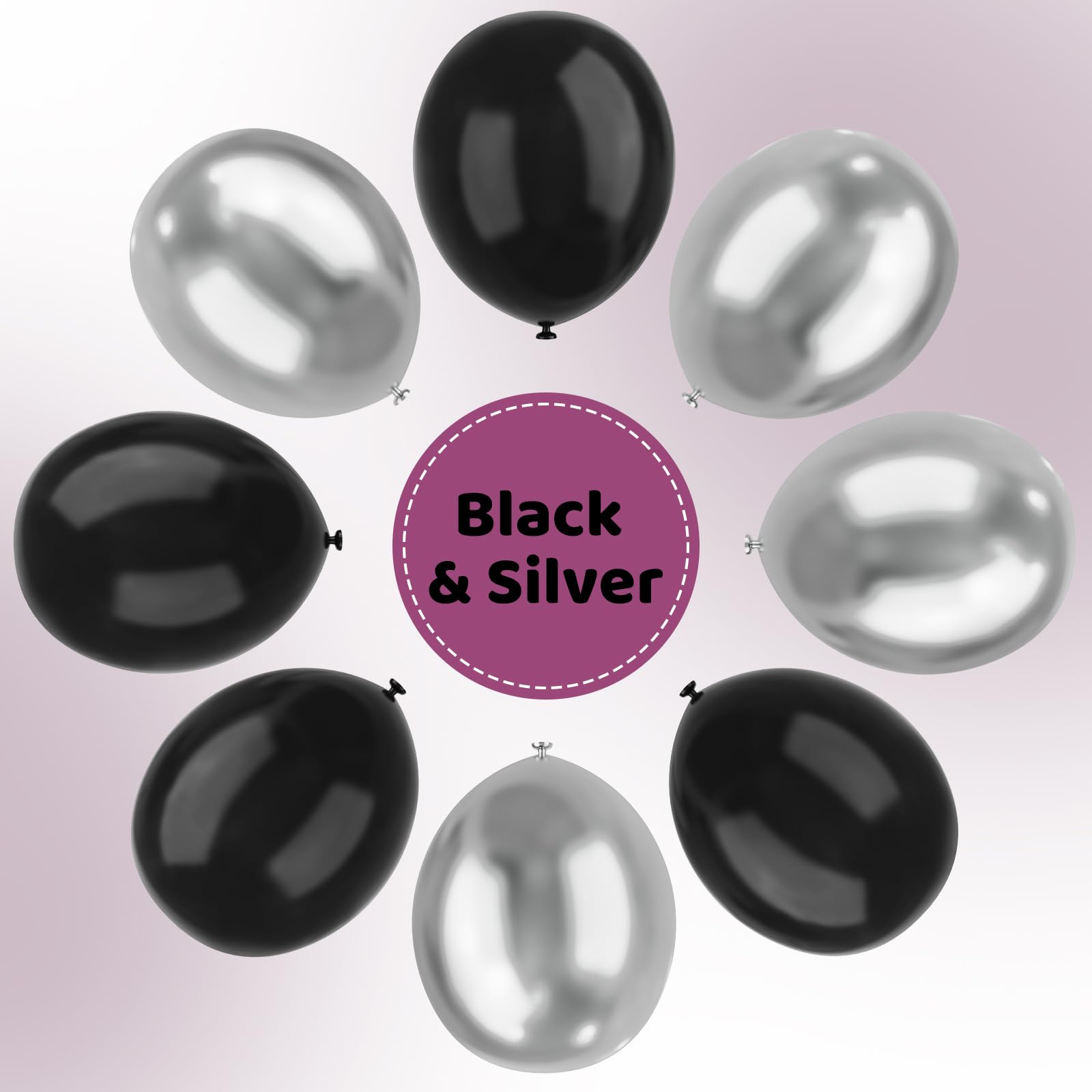 {Black Silver Party Supplies} Our black silver latex balloon sets can add atmosphere to your party. It is the perfect decoration for happy occasions or celebratory moments such as birthdays, graduations,wedding, engagement, opening ceremonies and anniversary celebrations, suitable for indoor and outdoor events.