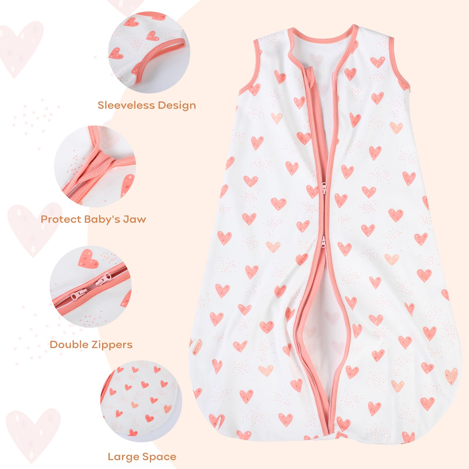 Smooth 2-Way Zipper: Our sleep sack double zipper makes midnight diaper change easily. The interior zipper guard and top zipper cover protect any scratches or discomfort from baby's delicate skins, ensuring the safety of your beloved baby.