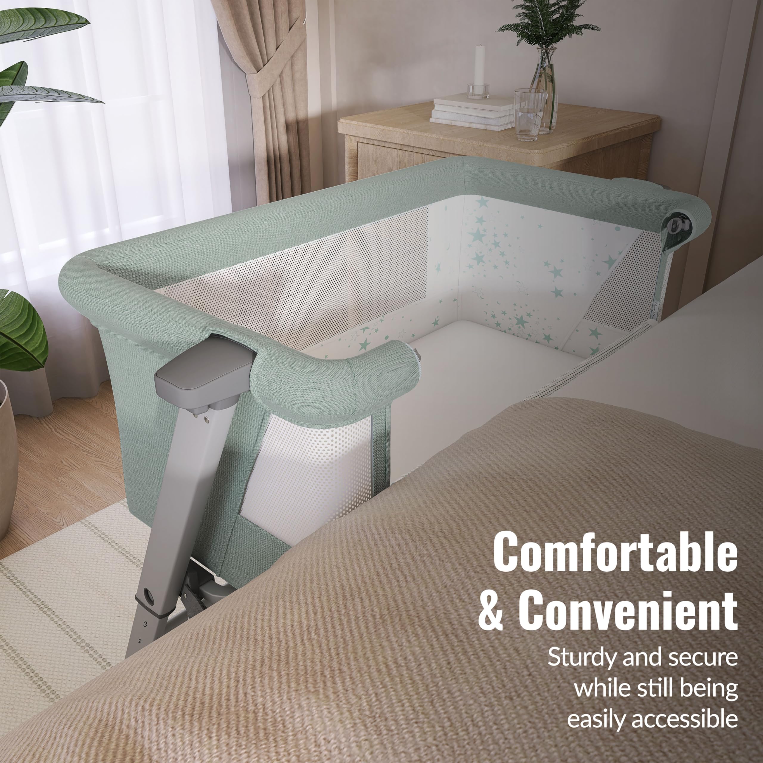 CONVENIENT FEATURES: Enjoy a quick tool-free assembly. The sturdy strap system allows you to easily secure the bassinet to your bed frame. Lightweight and mobile, enough to move from room to room for convenience