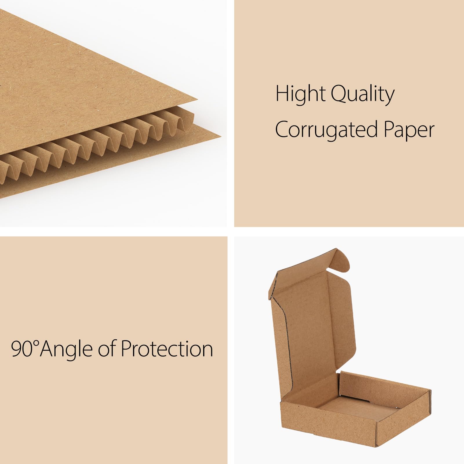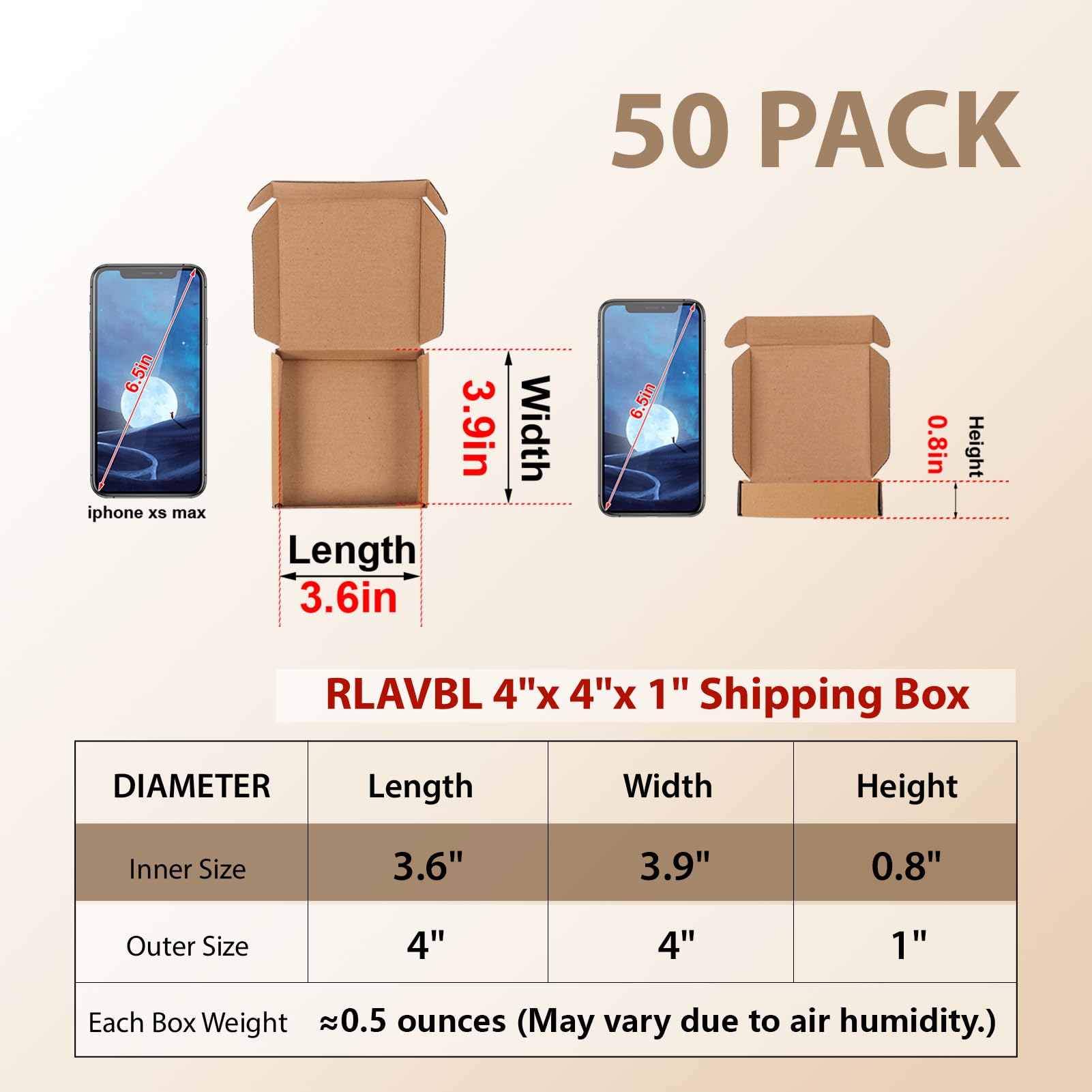 DIMENSION: The shipping boxes set includes 50 packs of the cardboard box. The outer size of this small mailer box is 4” x 4” x 1”(L x W x H), the inner size is 3.6" x 3.9" x 0.8". Suitable for packing or mailing those small and lightweight items.