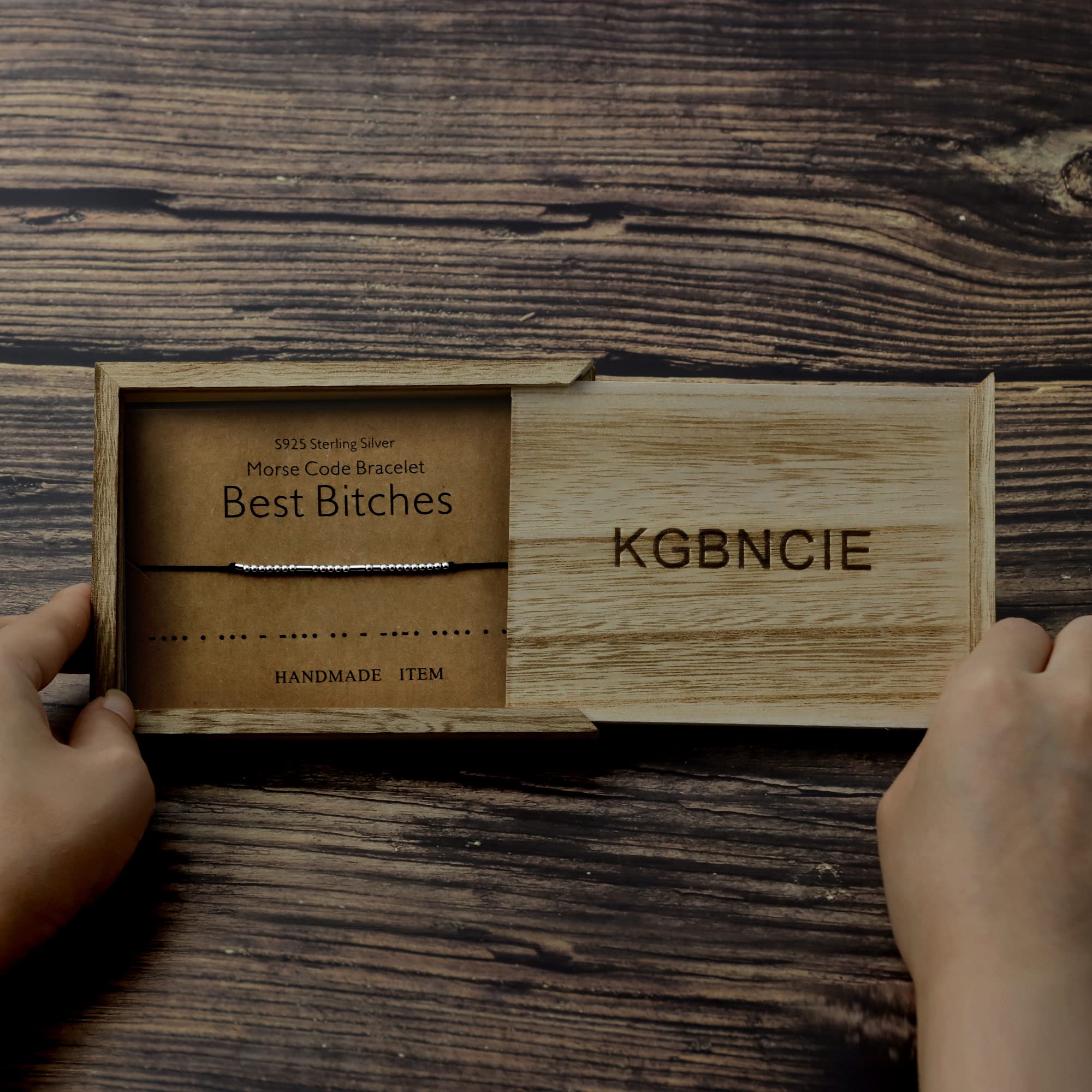 The Bracelet Inspiration Design: Morse code is composed of dots and dashes which represent different letters or numbers. The international morse code encodes the 26 English letters A through Z. Morse code is a good idea to send hidden messages to him or her.The bracelet for this listing is "Best Bitches"