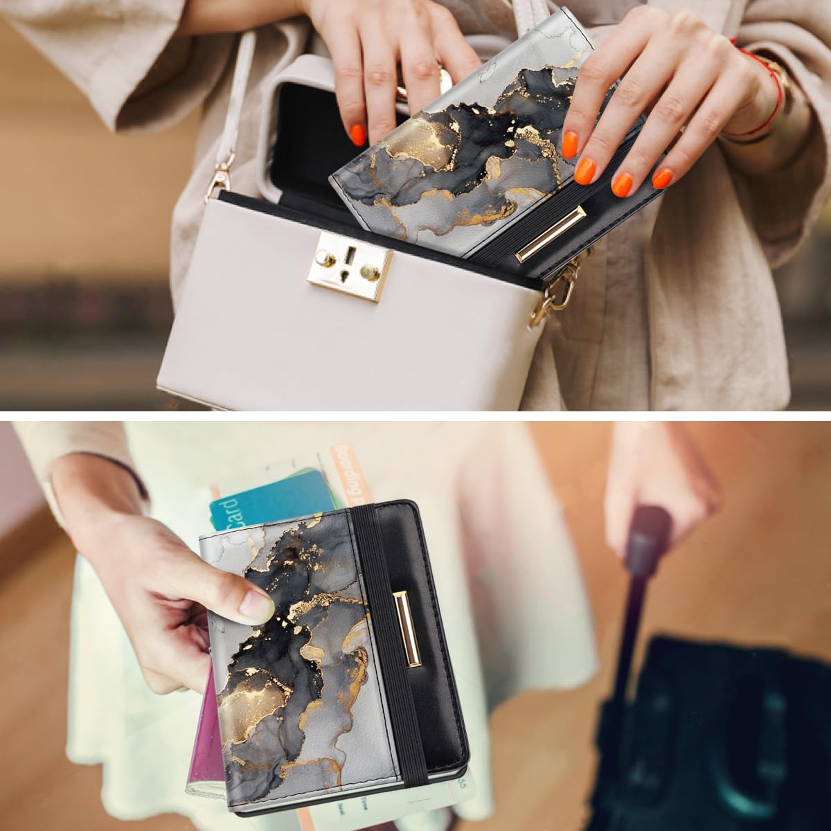 ★【Safe and Protected Passport Holder】:This marble passport holder with RFID blocking.Block RFID readers from scanning your cards information. Perfectly protect your credit cards,passport,id cards.It is easy and convienient to take it everywhere, travel,casual,outing,weekend hiking,shopping,daily use etc.