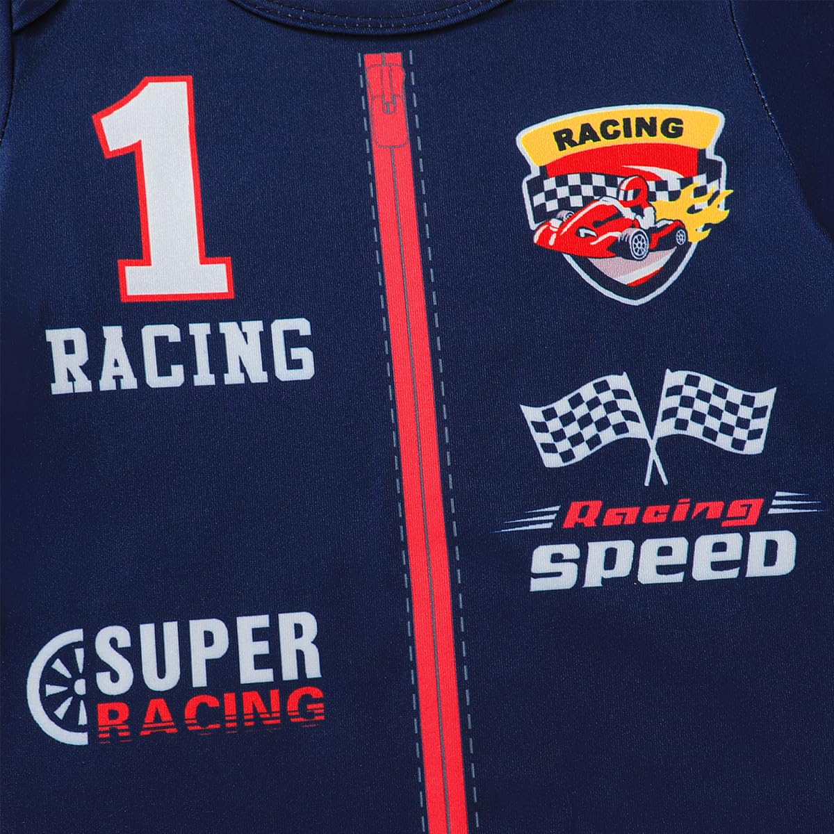 This baby boy one year old birthday outfit has "1", "RACING" prints and checkered flags. Navy with red trim gives a racer look, making this 1st birthday set perfect for your little one's first birthday.