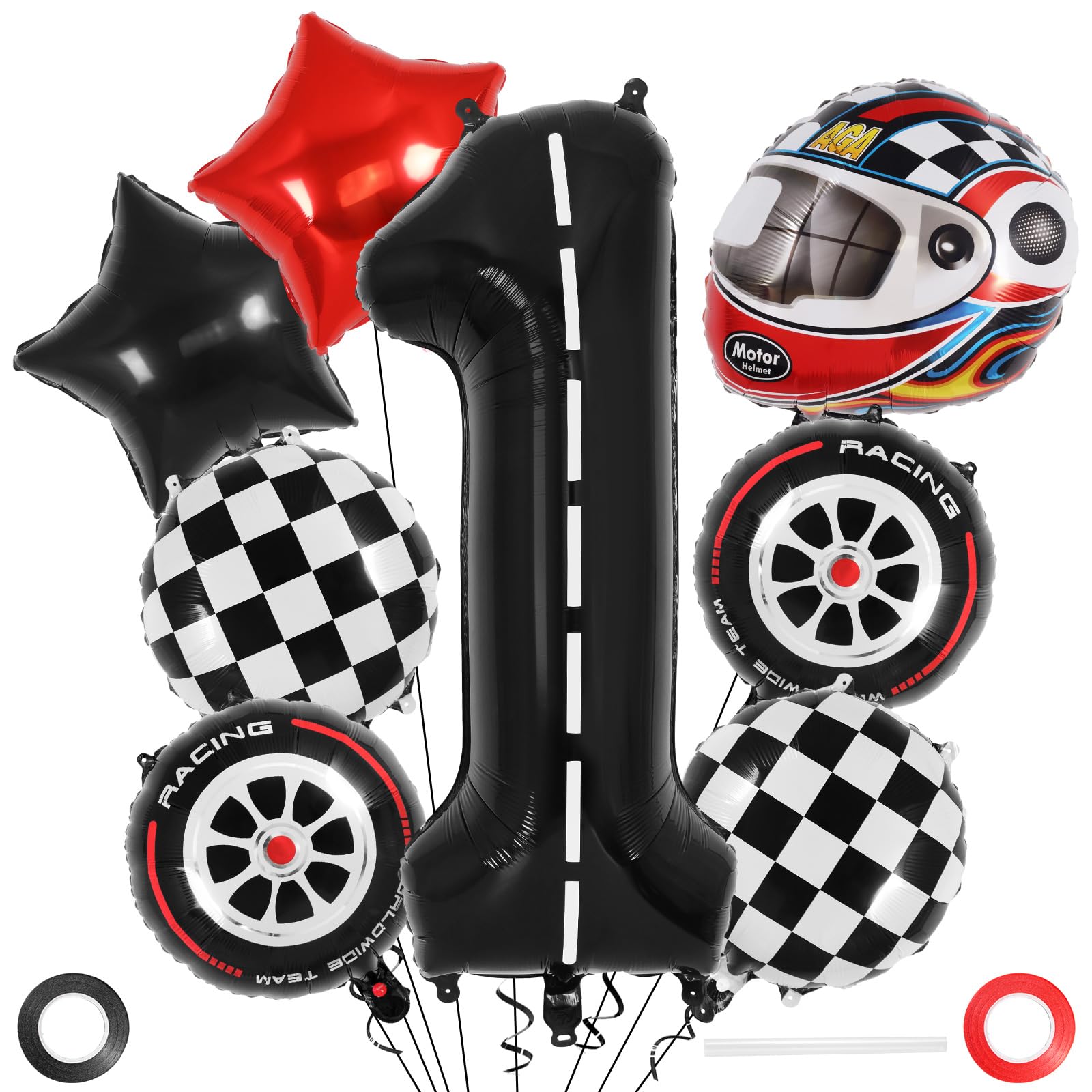 1 x racing print romper + 1 x navy checkered racing hat—this complete one year old birthday set has everything for your baby's first birthday.