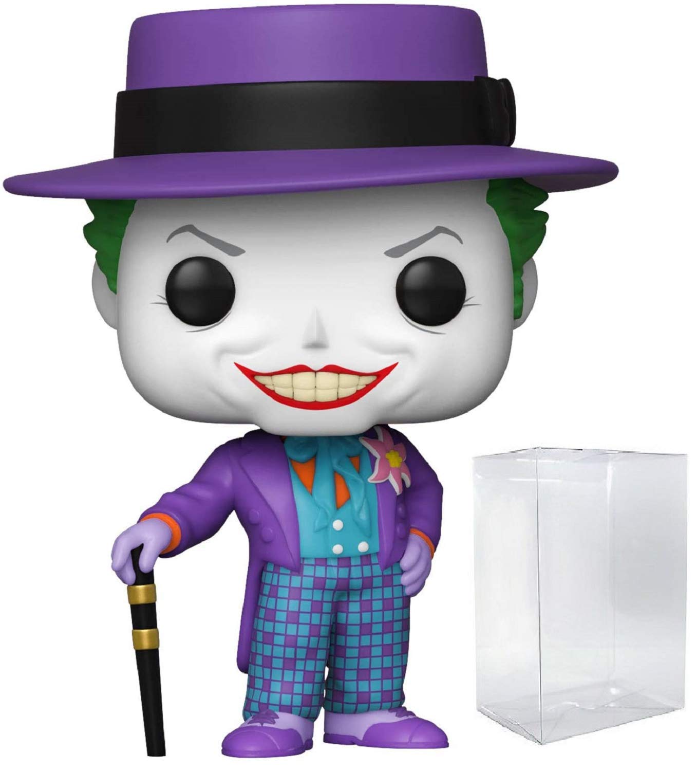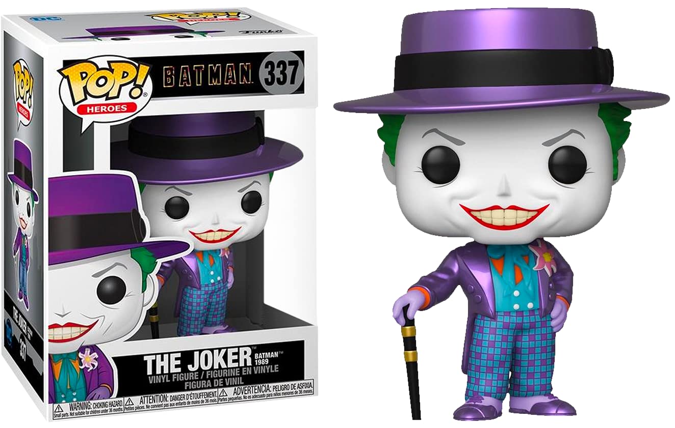 From Batman 1989, Joker with Hat [Jack Nicholson], as a stylized Pop vinyl from Funko. Figure stands 3 3/4 inches and comes in a window display box. The Dark Knight is turning 80 and all of Gotham City is celebrating its favorite super-hero! Created by Bob Kane with Bill Finger, Batman was introduced in Detective Comics #27. Collect your favorite characters straight out of the films Michael Keaton's Batman (1989), Batman Returns, Val Kilmer's Batman Forever & Batman & Robin! Collect the entire line of Batman 80th Funko Pop! Vinyl's: Batman 1st Appearance (1939), Batman (1989), Batman & Robin (1997), Red Son Batman, Batman Dammed, The Batman Who Laughs & Joker (1989). Collect the entire Justice League Movie Funko Pop! Vinyl's: Superman, Batman, Wonder Woman, Aquaman, Cyborg, The Flash, Green Lantern, Darkseid, Steppenwolf, Lex Luthor & Joker. Collect the entire DC Heroes Flash Funko Pop! Vinyl's: Flash, Reverse, Captain Cold, Zoom, Kid Flash, Vibe, Jay Garrick, Killer Frost, Bloodwork & Godspeed. Collect the entire line of DC Heroes Batman v Superman Funko Pop! Vinyl's: Batman, Superman, Wonder Woman, Aquaman, Knightmare Batman & Superman Soldier! Collect the entire line of Suicide Squad Funko Pop Vinyl's: Joker Shirtless, Rick Flag, Killer Croc, Katana, Deadshot (Masked), El Diablo, Harley Quinn, Boomerang, Enchantress, Tuxedo Joker and Dr. Harleen Quinzel. Collect the entire line of Suicide Squad 2 Funko Pop Vinyl's: King Shark, Peacemaker, Bloodsport, Savant, Polka-Dot Man, Harley Quinn in Bodysuit, Harley Quinn in Damaged Dress, Sol Soria, Amanda Waller, Blackguard, Weasel, Mongal, Thinker. (Each Sold Separately) Includes a Pop box protector fit for any collectors investment.