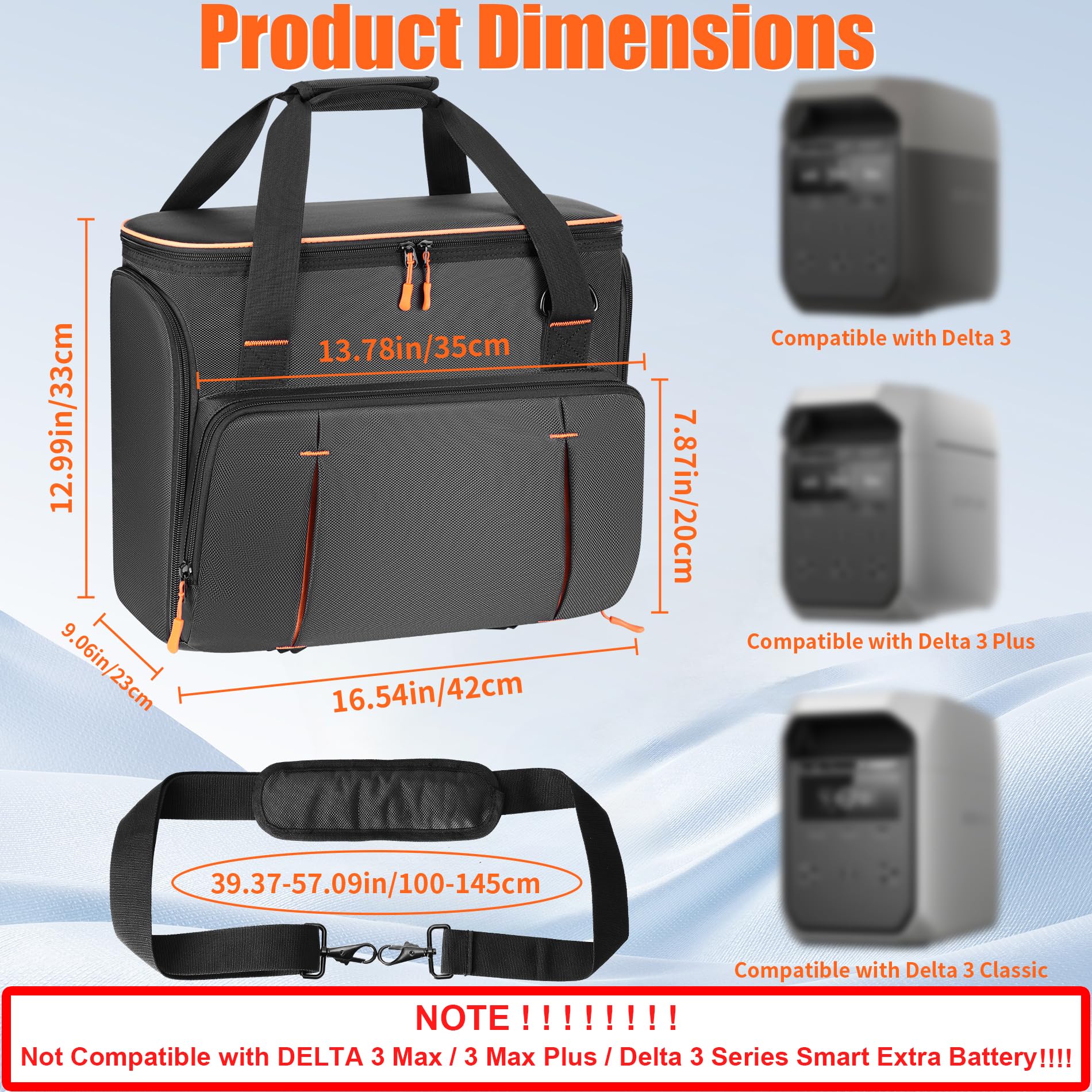 Compatibility: This portable carry bag is compatible with ECOFLOW DELTA 3 / DELTA 3 Plus / DELTA 3 Classic, with multiple portable opening that compatible with eco flow delta 3 / 3 plus power station. The portable bag can help to protect and carry the heavy power station easily. (Not Compatible with DELTA 3 Max / 3 Max Plus / Delta 3 Series Smart Extra Battery DELTA 2 Max, DELTA 2 Max +, DELTA MAX(2000), DELTA 1300, DELTA Max)