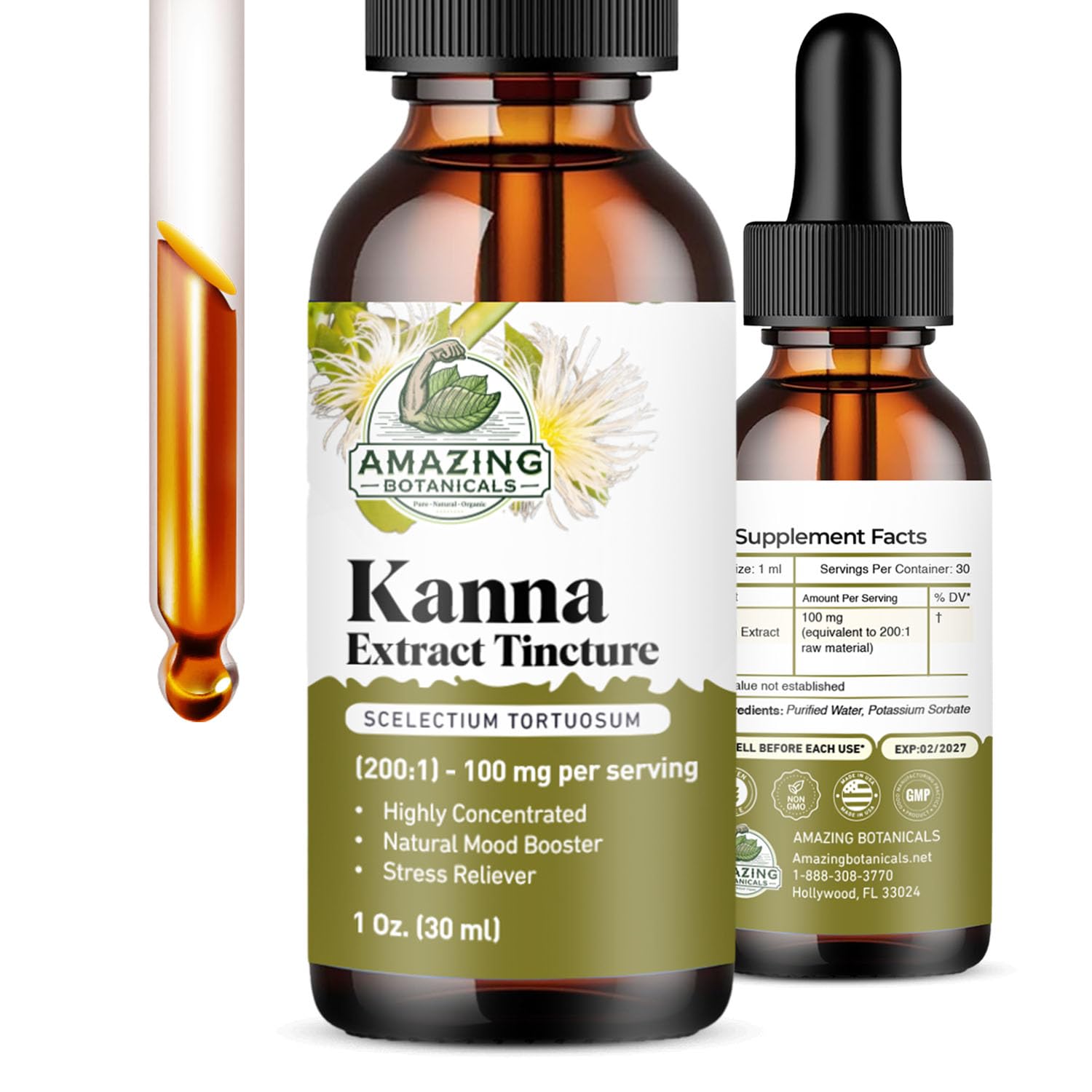 💧Powerful Extract: Our kanna tincture contains 200X Extract, providing a potent and concentrated form of Sceletium Tortuosum.