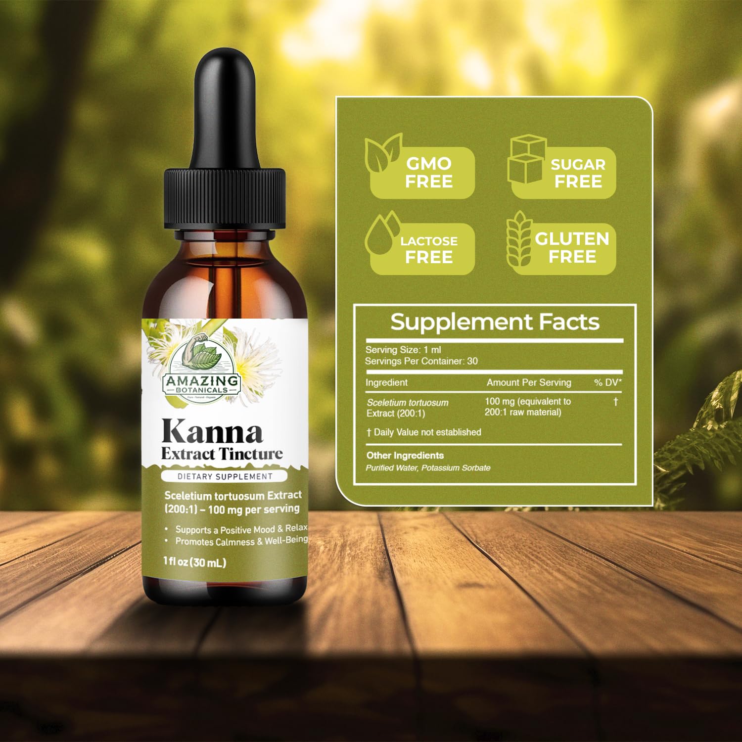 Discover the natural benefits of Amazing Botanicals 200x Sceletium Tortuosum Extract Tincture. Each 30ml bottle contains a powerful 200X concentration of Sceletium Tortuosum, providing 150,000 mg of this traditional herb known for its mood-enhancing and relaxing properties. Sceletium Tortuosum, has been used for centuries in South African traditional medicine to support emotional well-being and promote relaxation. Our high-potency tincture allows you to experience the maximum benefits of this powerful extract in a convenient liquid form. Manufactured in a GMP-certified facility, our Extract Tincture is rigorously tested for purity and potency, ensuring you receive a safe and reliable supplement. The easy-to-use dropper bottle makes measuring and taking your desired dosage simple, fitting seamlessly into your daily routine.