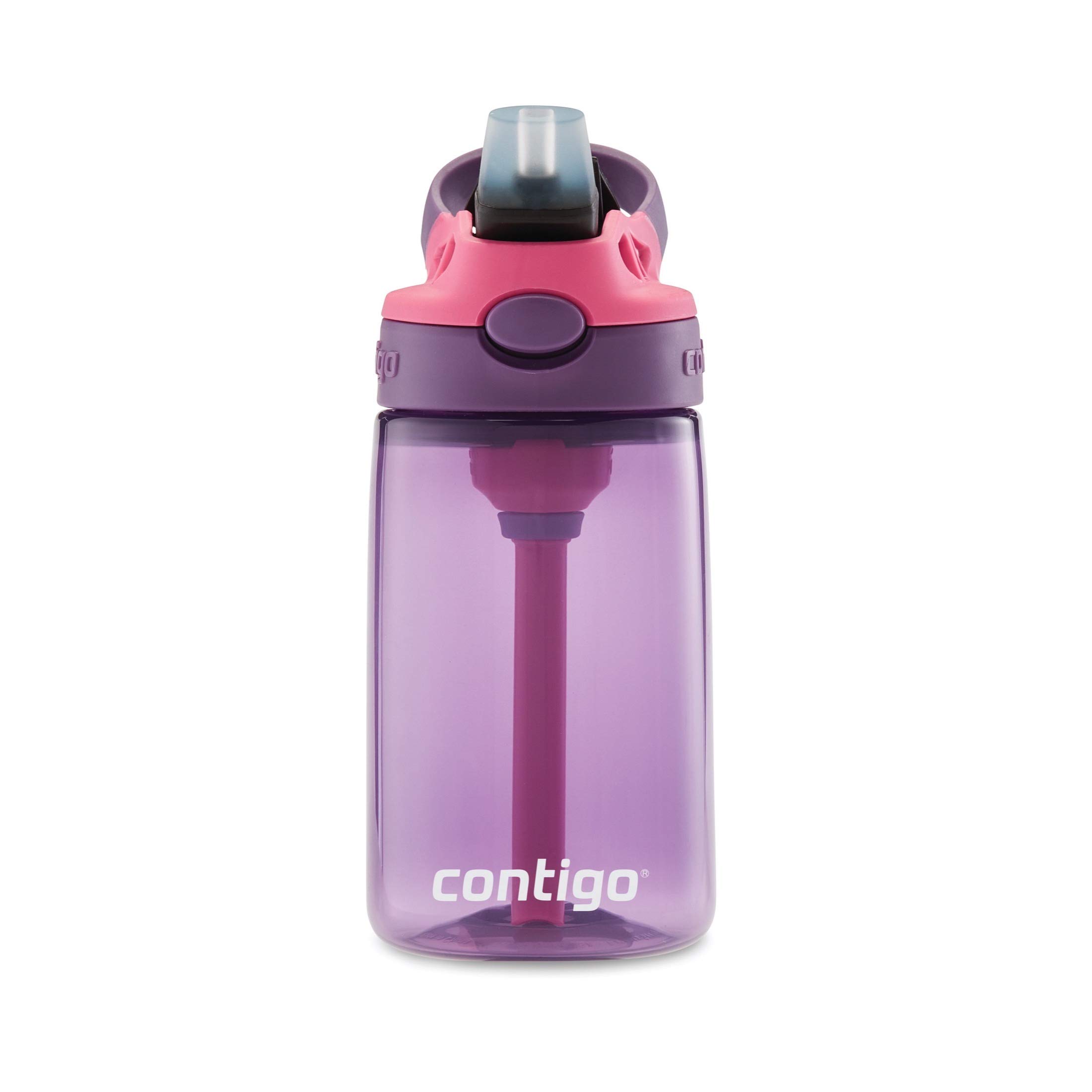 Fret no more, the Contigo Kids AUTOSPOUT Straw Water Bottle with Easy-Clean Lid has come to the rescue! Kids get a kick out of pressing a button to open the pop-up straw for effortless one-handed drinking, and they can easily push the spout under the cover to protect the mouthpiece from the elements. Adults appreciate that the straw features a spill-proof valve so car seats and tables are safe from spills—even if little ones hold the bottle upside down. When it's time to clean up, you’ll be happy to know that all parts are top-rack dishwasher-safe, the lid easily disassembles for full-access cleaning, and the lid is designed to eliminate all nooks and crannies in which filth and grime might accumulate. Rest assured, your new water bottle comes with a lifetime guarantee and is made with -approved, BPA-on the loose materials that won’t give off plastic smells or tastes. For ages 3 and up.