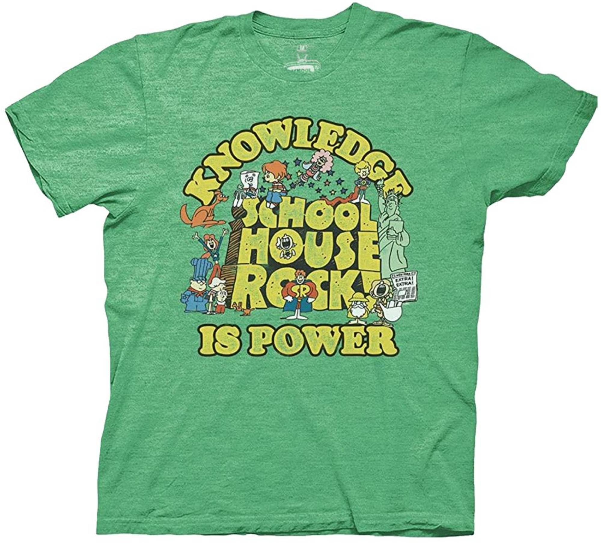 ☑ AS REAL TODAY AS IT WAS IN 1973: 100% Officially licensed apparel by Schoolhouse Rock! This authentic KNOWLEDGE IS POWER adorned Schoolhouse Rock! logo graphic printed tee was designed in-house and manufactured to meet the high creative and quality standards required to receive the exclusive seal of approval for officially licensed products bearing the Schoolhouse Rock! name.