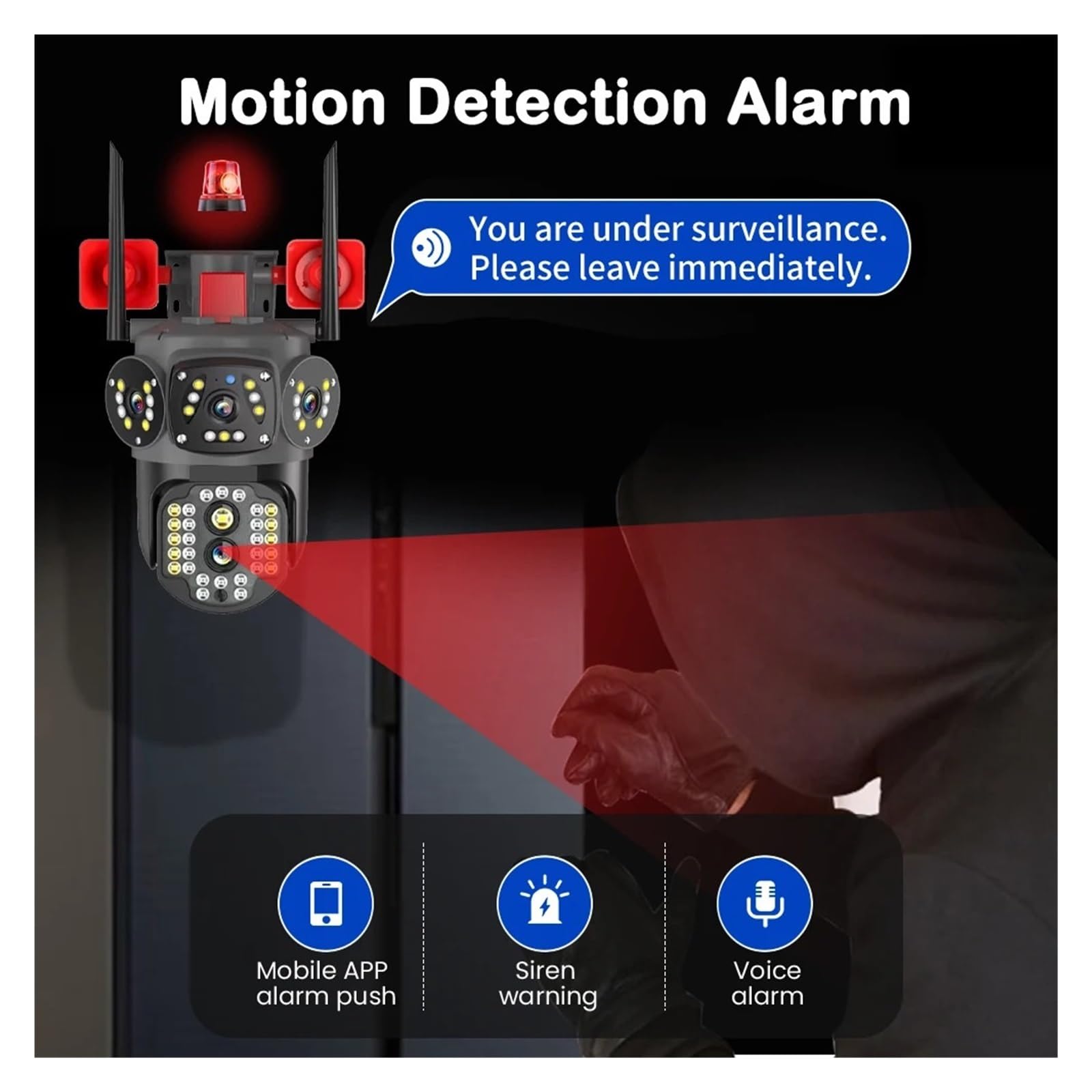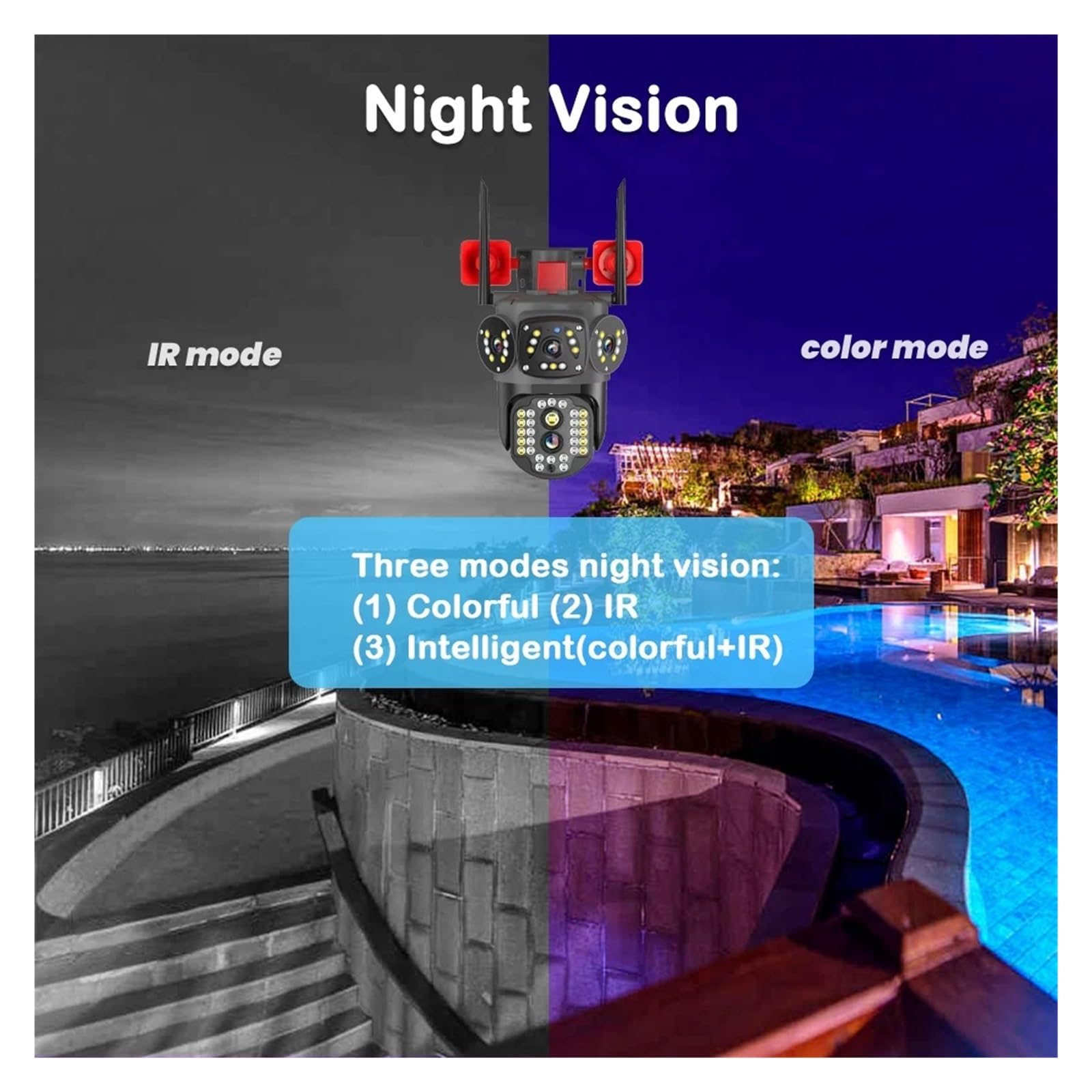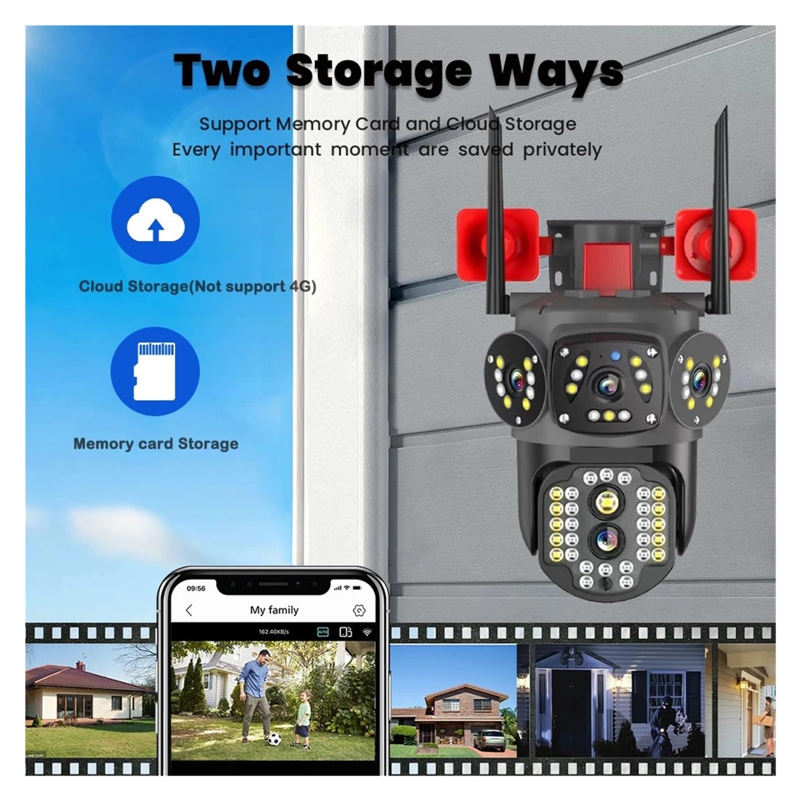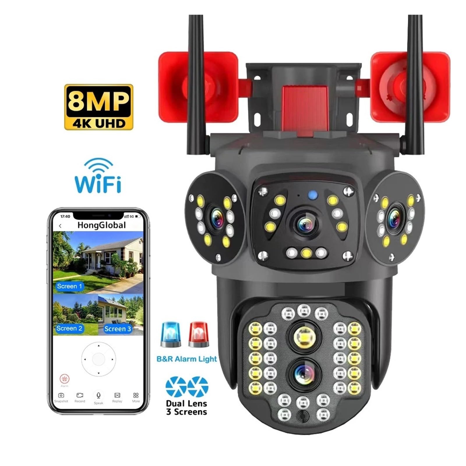 8MP 4K Ultra HD + Dual-lens 3-screen Monitoring: 8 million pixels at 4K resolution presents detailed real-time images. Combined with the innovative 3-screen display design, it can monitor from different angles without the need for additional installation of multiple devices; 4mm lens + 10x digital zoom, balancing close-up details with a 15-25-meter red light night vision range, providing clear surveillance in both day and night conditions.