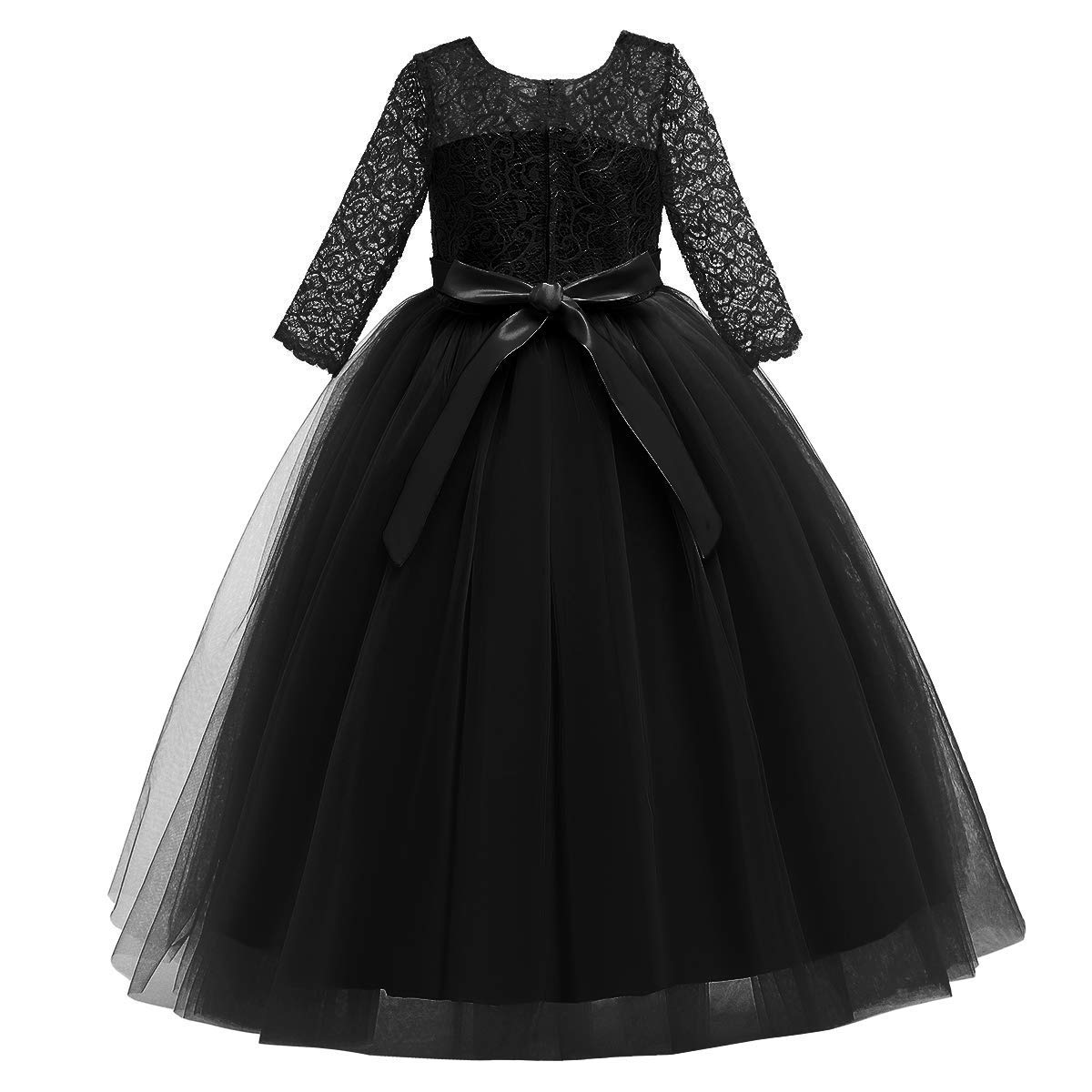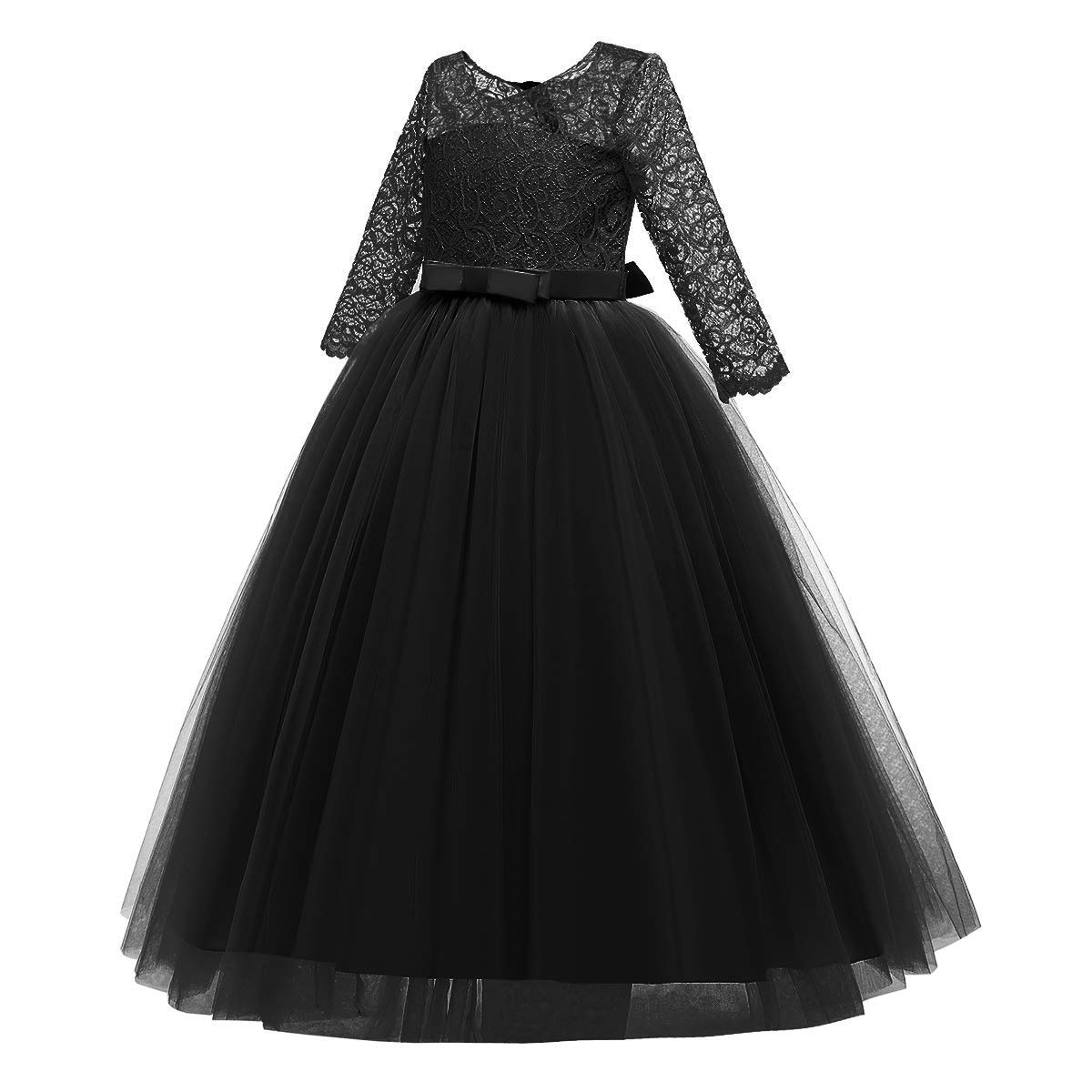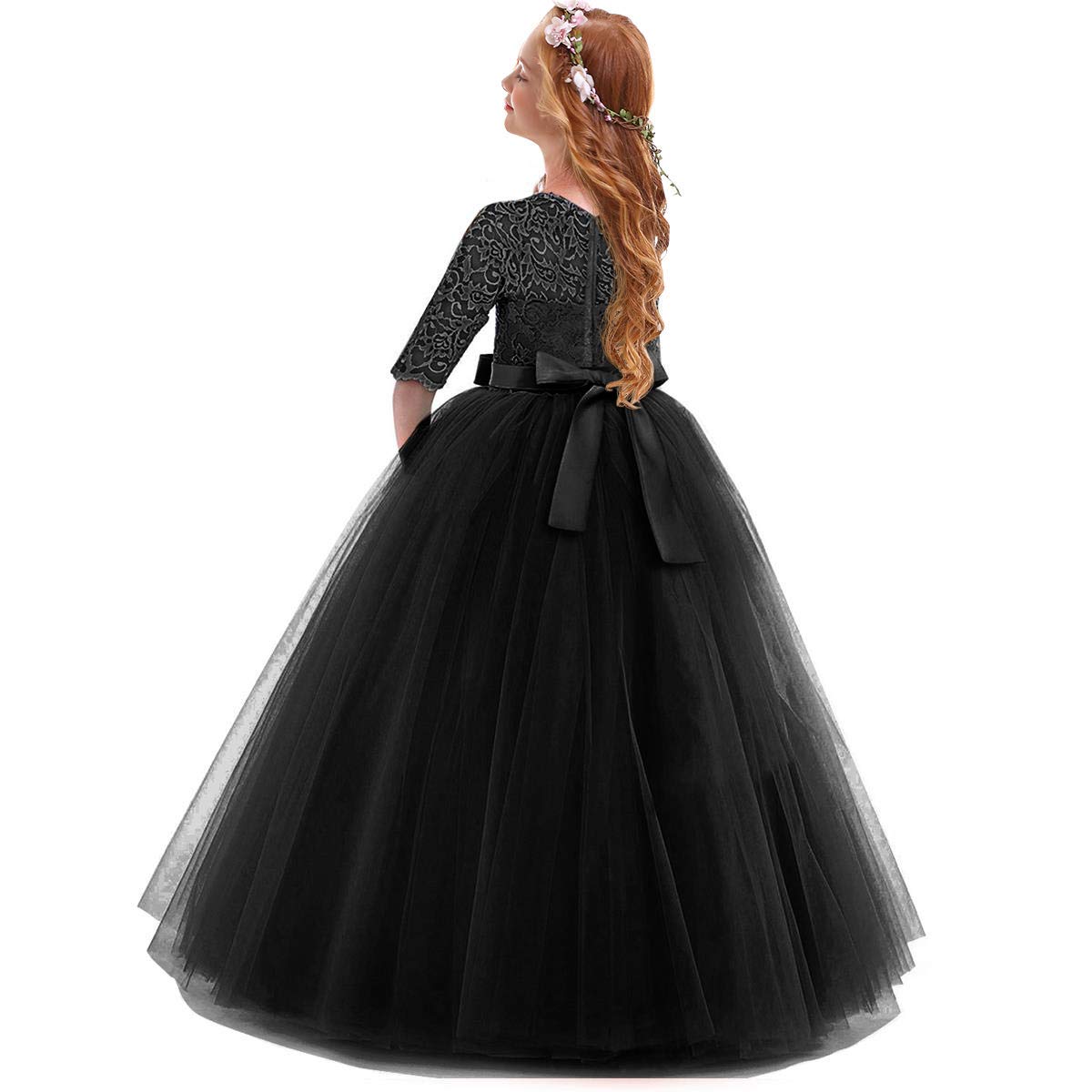 Design: Elegant flower girls dresses for weddings princess formal long maxi evening prom ball gown birthday party full length dress for kids junior girls, floral lace, hidden back zipper closure, featuring beautiful design. Your little princess will be thrilled with this gorgeous floral lace bow layered tulle tutu dress.