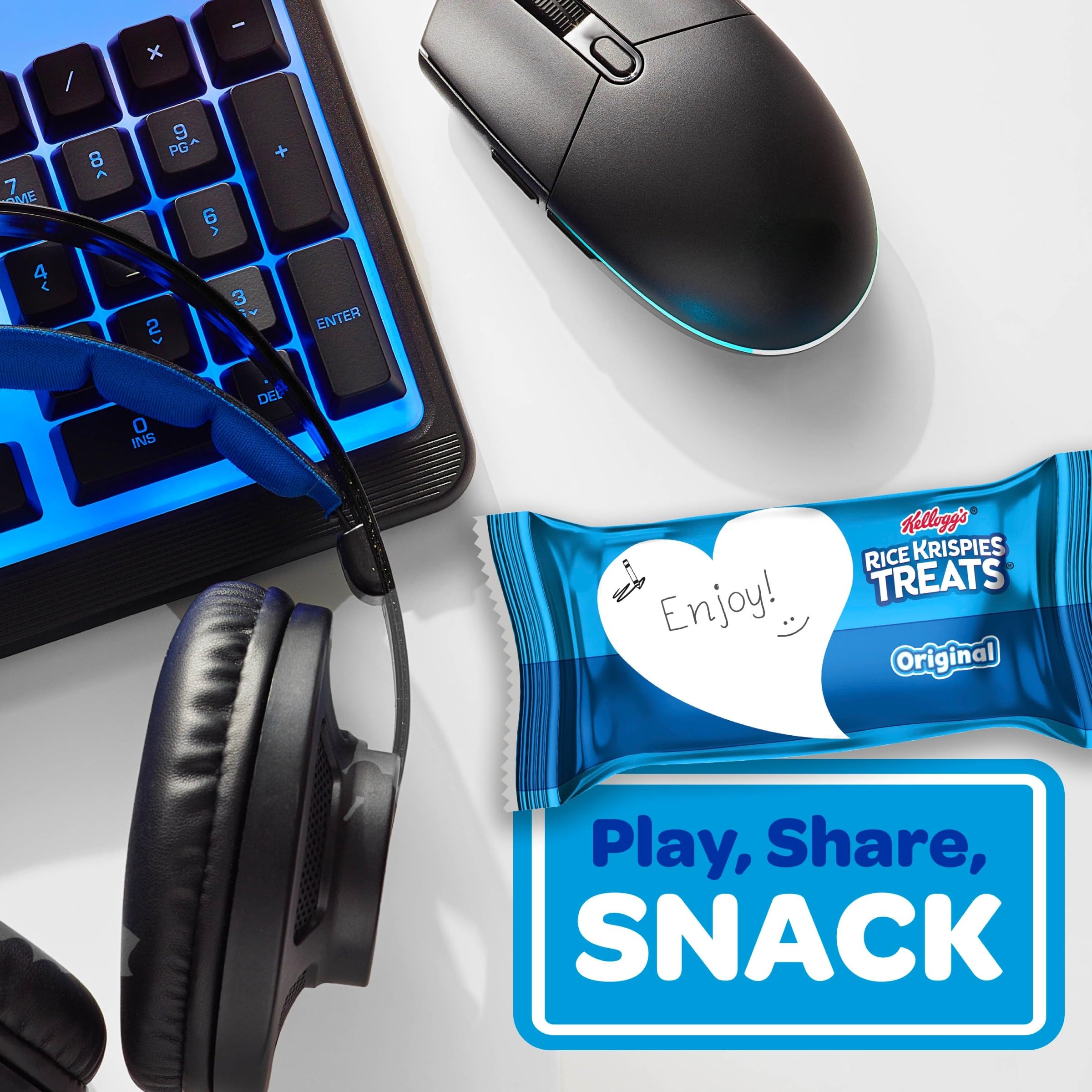 Product Description Enjoy the fun of everyday moments with the irresistible taste of Rice Krispies Treats crispy marshmallow cereal bars Original. Create memorable moments with each and every delectable square that pulls apart to reveal ooey, gooey goodness. Made with crispy rice cereal and the taste of soft marshmallows, each bar is a delicious, ready-to-eat treat wherever you go. A classically delicious treat, these individually wrapped marshmallow bars are perfect for enjoying together; Enjoy at home or take a few with you for traveling, lunchtime, at the game, or pack for school snacks. They're easy snacks to share with friends and family. Make someone's day by adding Rice Krispies Treats crispy marshmallow cereal bars to goodie bags, gift baskets, and care packages. Satisfy your sweet craving with the goodness and on-the-go convenience of Rice Krispies Treats Original marshmallow cereal bars. From the Manufacturer Now you don't have to make Rice Krispie treats yourself to enjoy the rich, chewy flavor you crave. Individually wrapped Rice Krispie Treats are made with wholesome Rice Krispies and marshmallows for a sweet, chewy texture. They are also low in fat and have only 90 calories per square. Rice Krispie Treats make a tasty snack for on-the-go kids.
