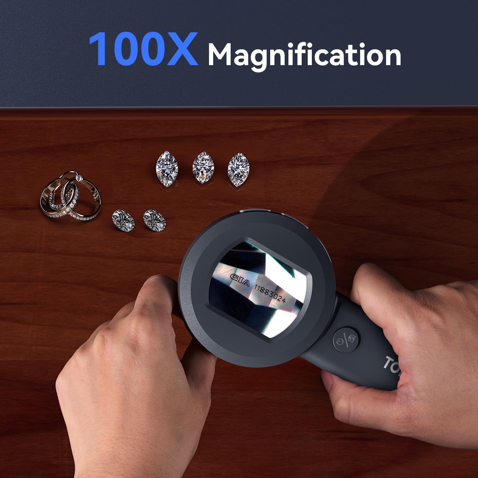 Powerful 100X Magnification( Fixed Focus) and 4X Zoom: With 100X magnification, this loupe magnifier provides a clear view for inspecting jewelry. This loupe will help you to see if your diamond or setting has any visual imperfections