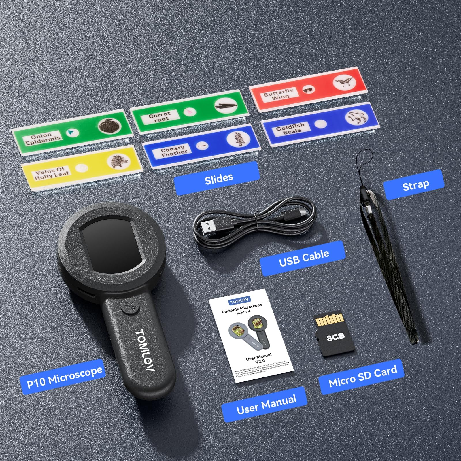 Visible & Shareable 2" LCD Screen: The TOMLOV P10 handheld miniscope delivers close-up, clear shots, and lets you view live images on a screen. Its easy-sharing feature makes exploring gems, jewelry, and coins much easier compared to other pocket scopes