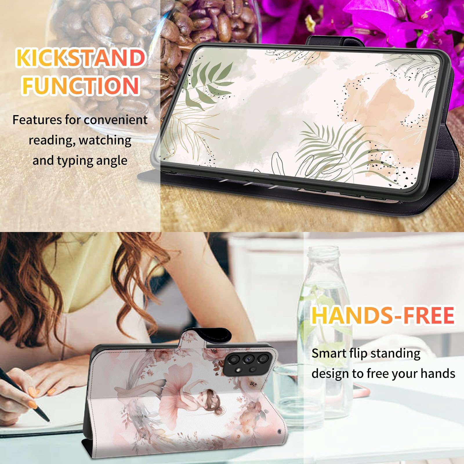 JANENFNA brand for Samsung Galaxy A53 5G Wallet Case with wristlet strap, features a stylish thin phone case to protect and style your phone all the time FEATURES: 1.Wristlet Strap - Exquisite and pratical, it can free your hand 2.Attractive Looking - Stylish beautiful graphics, make your phone look attractive 3.Function Practical Kickstand - Kickstand design with multiple viewing angle stand, free your hands 4.Wireless Charging - Slim wallet case that allows wireless charging 5.Large Space Keep Slim - 3 Card Slots + Money Pocket- carrying debit card, credit card, ID card, cash 6.Premium Materials - Hiqh-quality synthetic leather, soft, comfortable and protective 7. RFID Blocking - RFID technology application effectively shields the signals and keeps your personal information safe. 8.Safe Wallet - Magnetic closure is strong, hold your cards and money securely 9.Durable - The inner TPU case is firmly adhered to the outer wallet, you don't have to worry about it falling down MATERIALS: Synthetic leather PU & Hard PC PACKAGE CONTENT: 1x JANENFNA Wallet Case for Samsung Galaxy A53 5G RISK-FREE SHOPPING JANENFNA provide friendly easy-to-reach support in 24 hours. Easy replace or refund if you are not satisfied with our productsh.