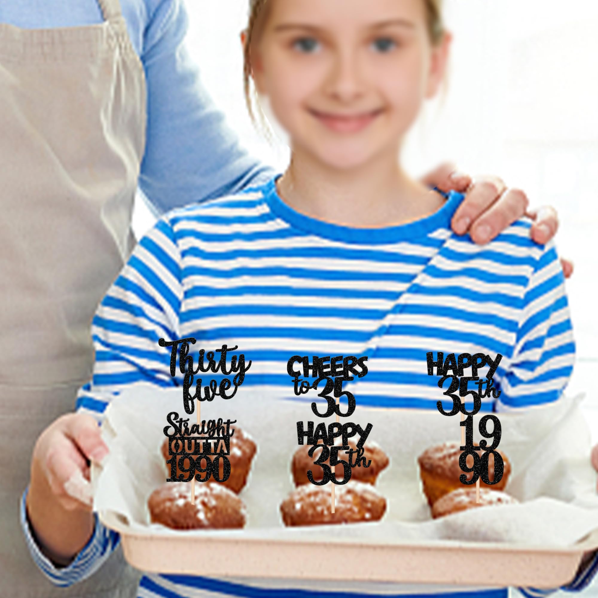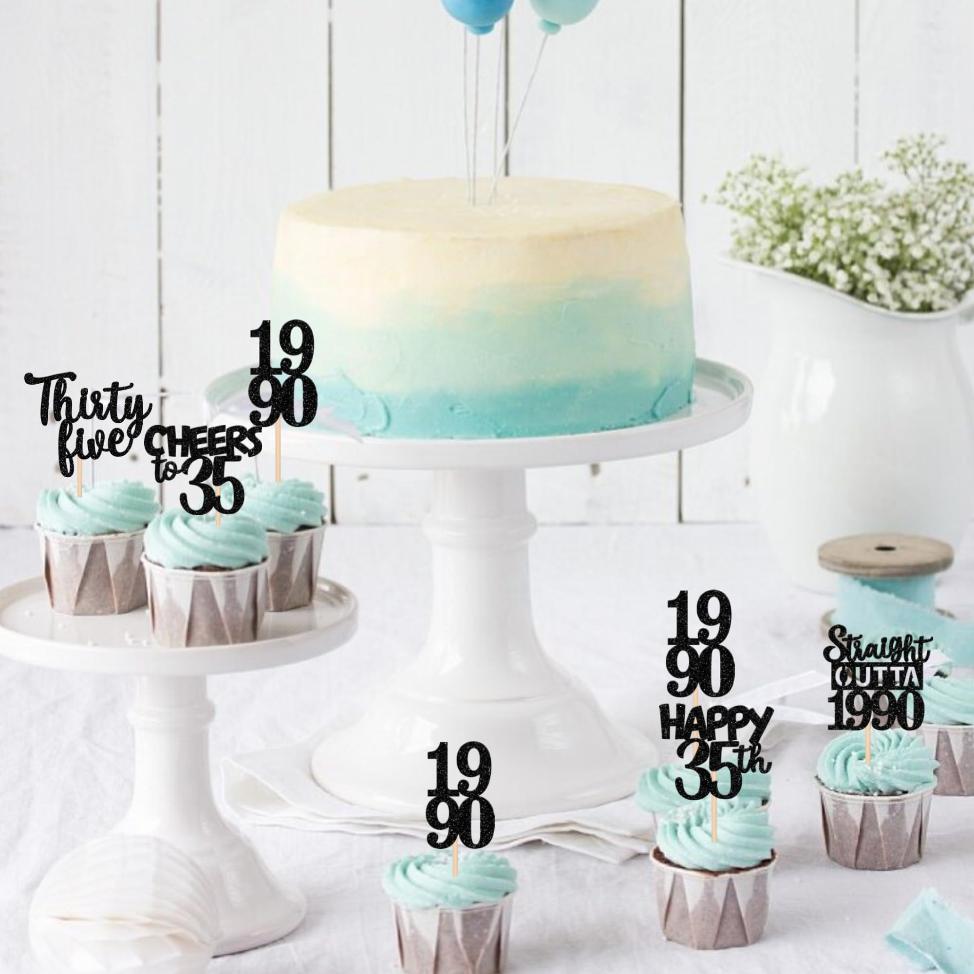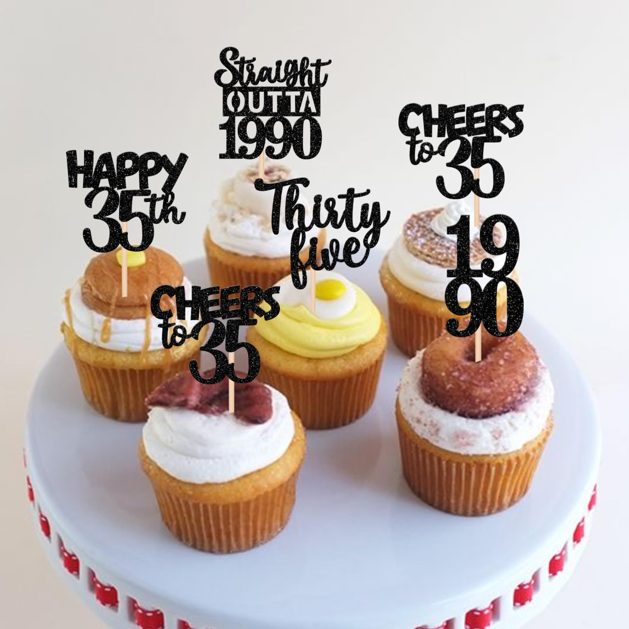 Wide Usages ! These straight outta 1990 cupcake toppers are perfect for happy 35th bithday theme party, straight outta 1990 theme party,35th wedding anniversary theme party,cheers to 35 years theme party cupcake decorations, they can make your cupcake more attractive and bring the fun to your party.You can also apply them for ice cream, fruits, cookies and other desserts.