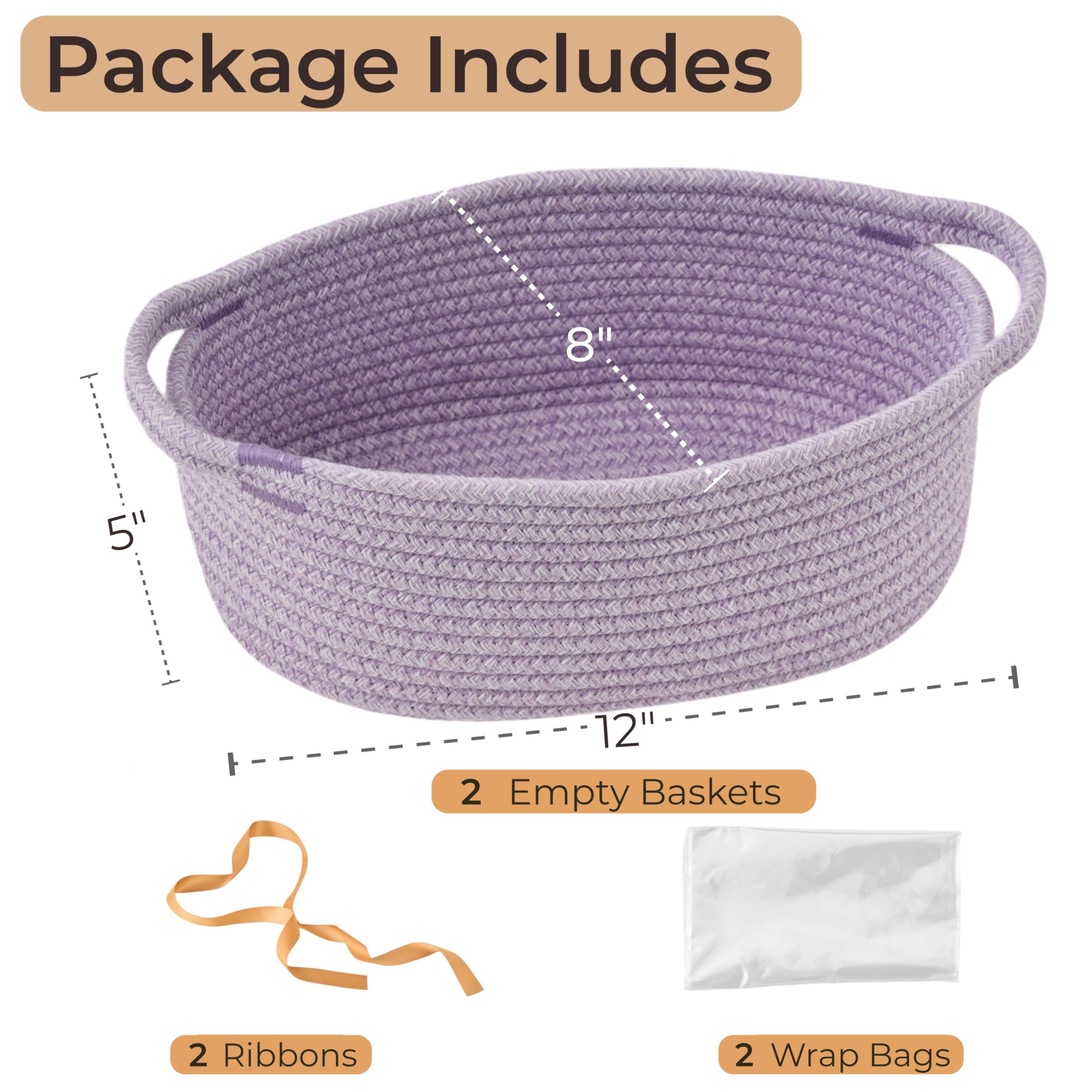 Create thoughtful and memorable gifts with this woven cotton rope gift basket set. Each pack includes an empty basket, clear wrap bag, and decorative ribbon, giving you everything needed to design a personalized present for any occasion. Perfect for baby showers, birthdays, weddings, anniversaries, and seasonal holidays like Easter, Valentine’s Day, Mother’s Day, Thanksgiving, Christmas, and Halloween, this basket makes gift-giving easy and stylish.