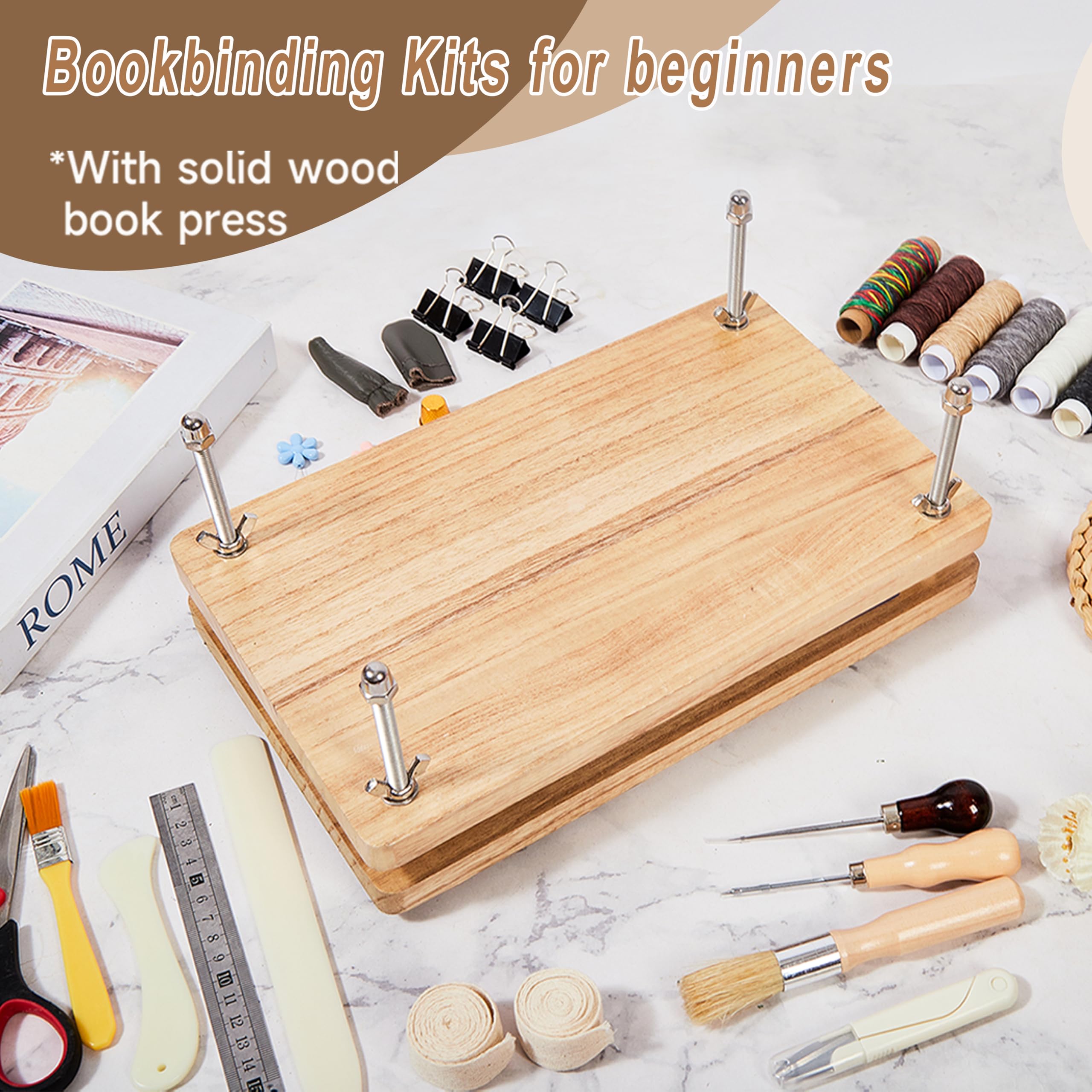 【Durable Construction in Every Book Binding Kit】Book binding kit features a heavy-duty solid wood press with polished finish that resists warping. Stainless steel hardware won't rust, ensuring your book binding kits last through countless projects. Non-slip pads provide stability during use.