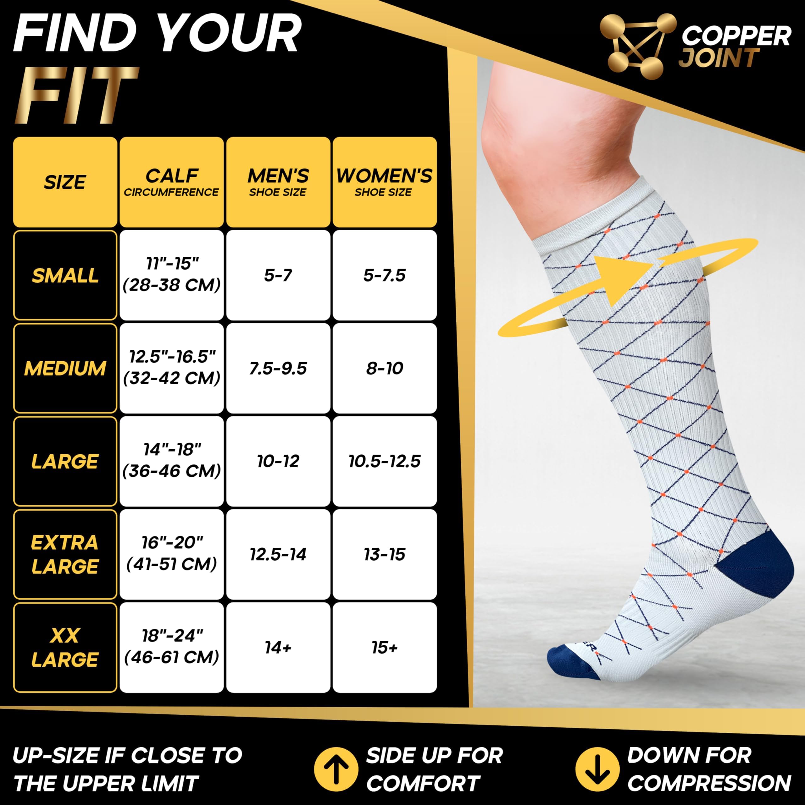 Copper Compression with Breathable Comfort: Copper-infused fibers help control odor and keep legs feeling fresh. Soft, moisture-wicking fabric delivers breathable support for flights, long shifts, workouts, or daily wear.
