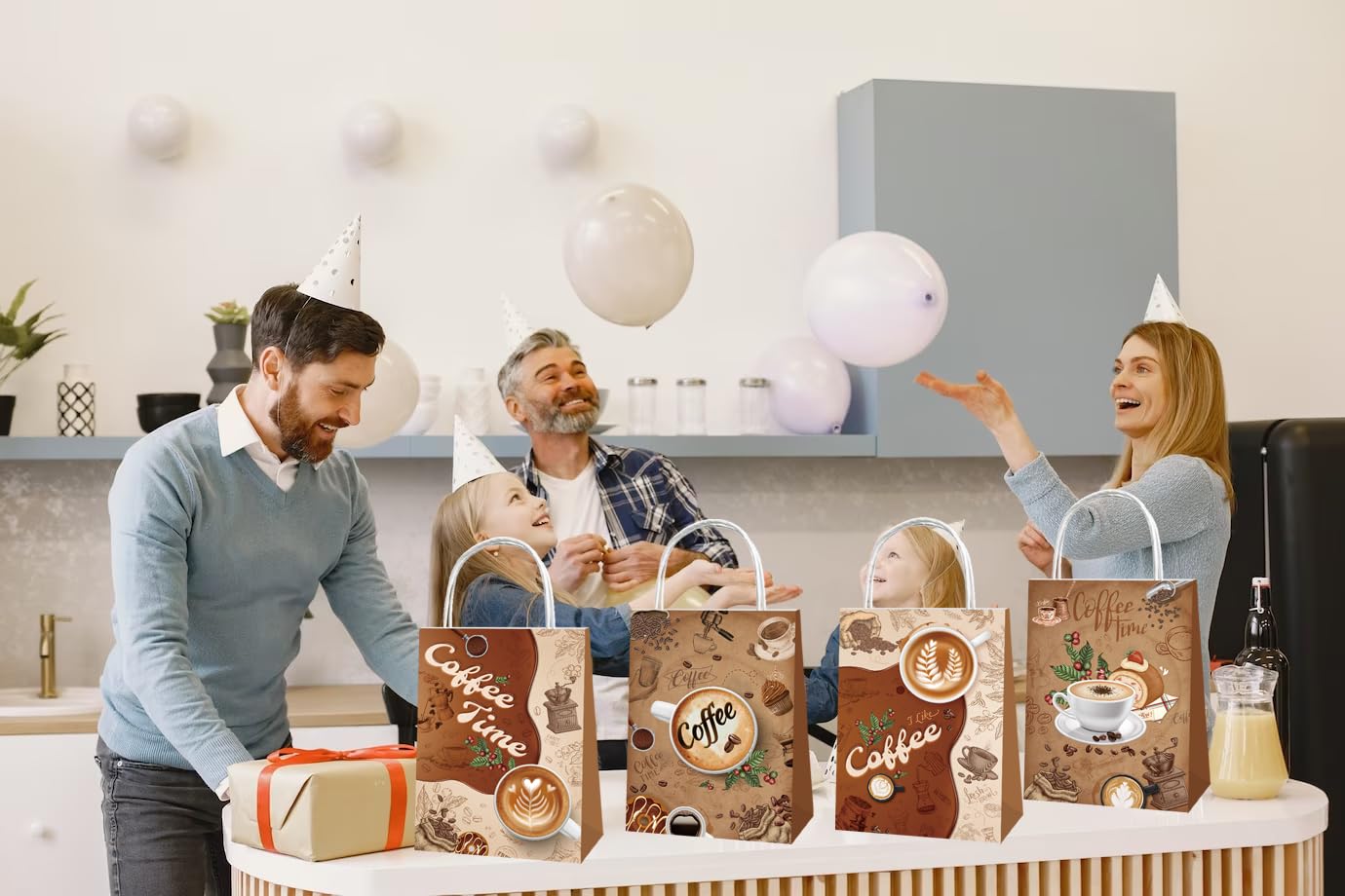 Coffee Designs: These coffee themed paper bags feature a variety of coffee elements, and the rich and colorful pattern designs make your party full of a strong coffee atmosphere, more attractive, and leave deep memories for your guests
