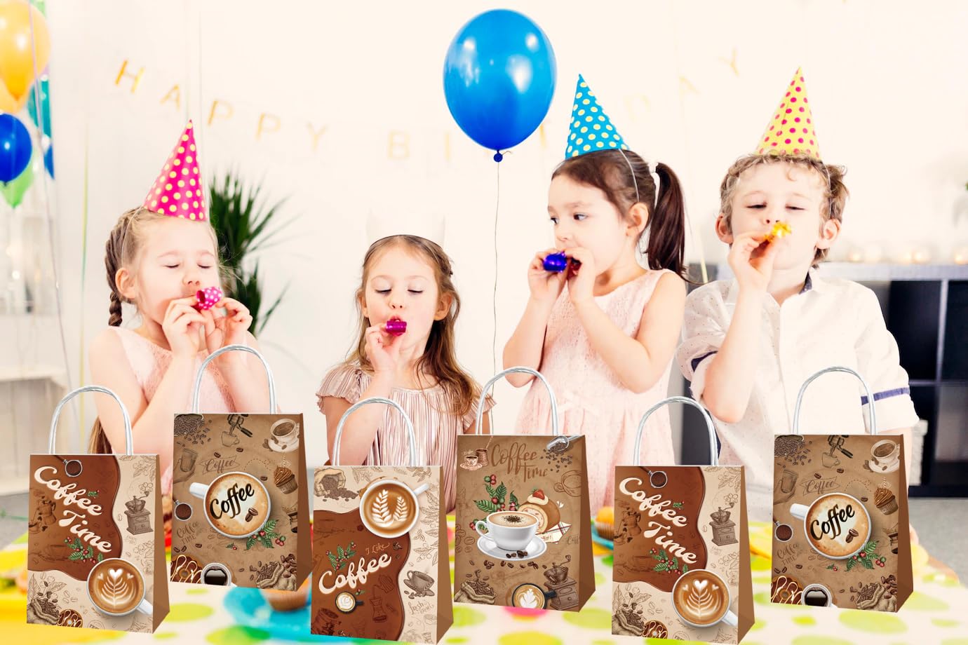 Dimensions: Our coffee paper bags are 5.9*2.8*11.6inch, they can store party gifts, souvenirs, small prizes, snacks, candies, and can also be given as small gifts to your party partners, suitable for any coffee themed event
