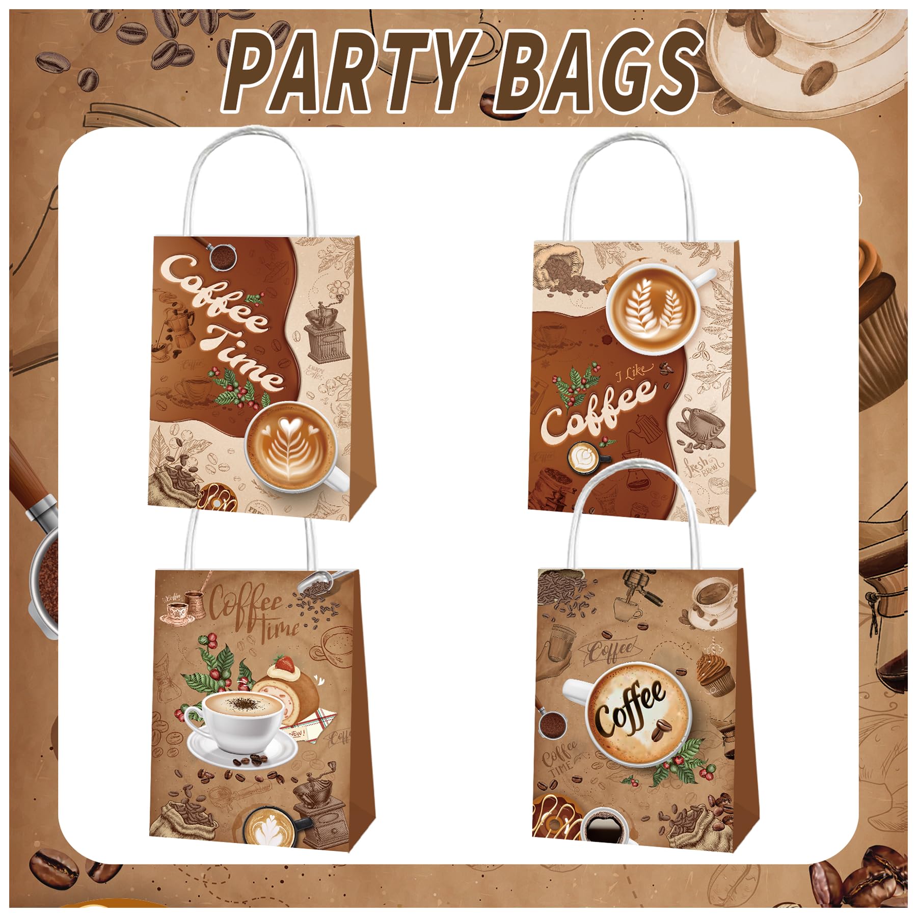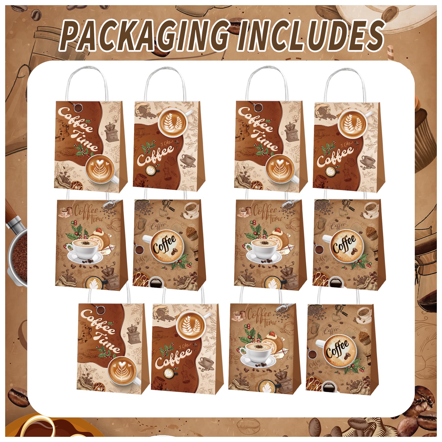 Coffee Party Bags: 12 pcs double sided printed coffee gift bags. Rich styles and sufficient quantity make your party more interesting