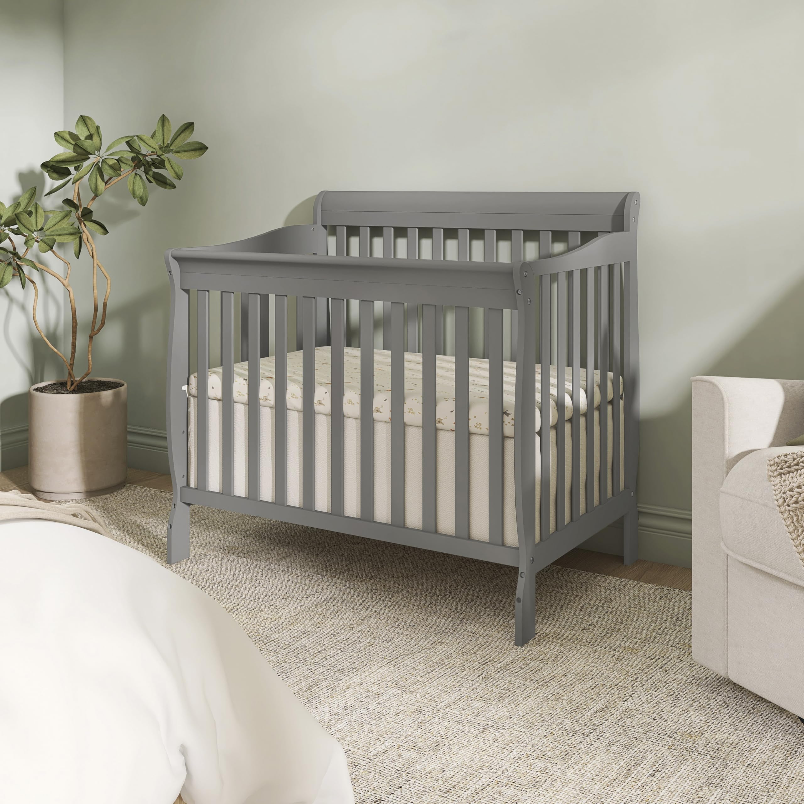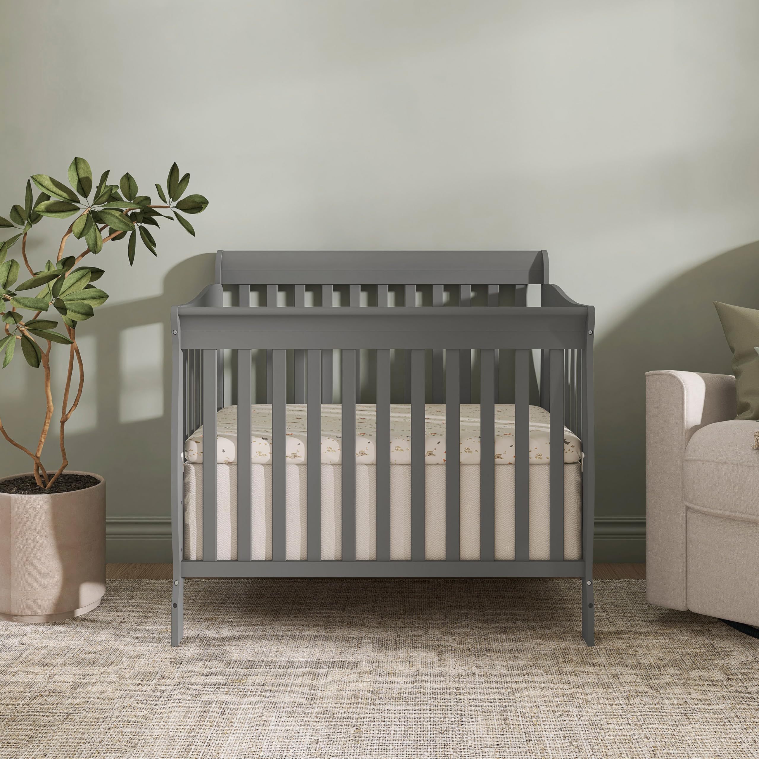 4-in-1 Convertible Mini Crib – Grows with your child from infancy through toddler years into childhood, easily converting from a mini crib to a mini daybed and a twin-size bed with and without footboard (conversion kits sold separately), delivering long-lasting value and versatility