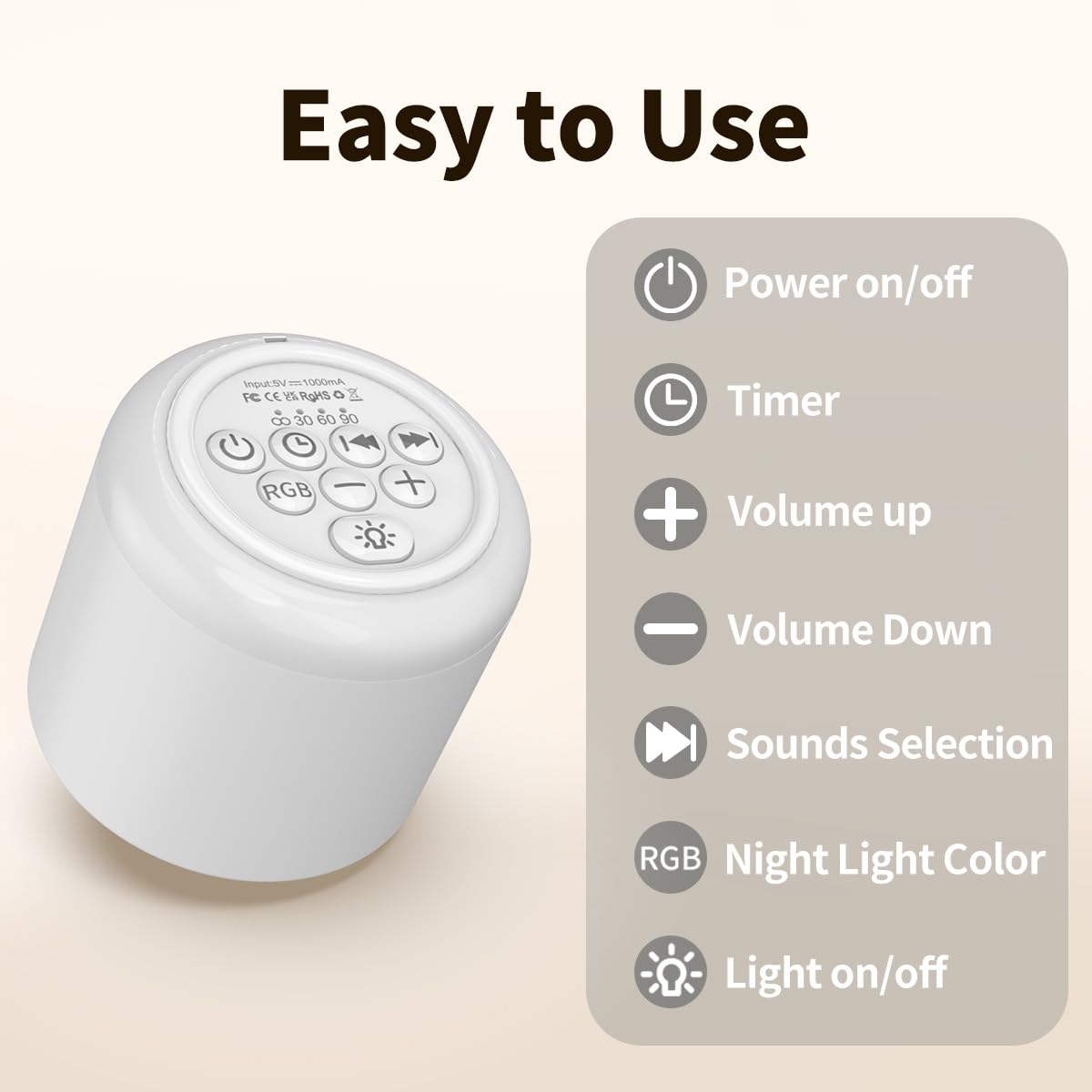 🥰【Elegant Design & Warranty Service】The design of mini baby sound machine is elegant and unique, which can be a wonderful present choice. This white noise machine has an 18-month warranty service since the purchase, which can give you a perfect after-sale experience. If you have any quality issues, please feel free to contact us in time, and we will gladly replace a new one for you.