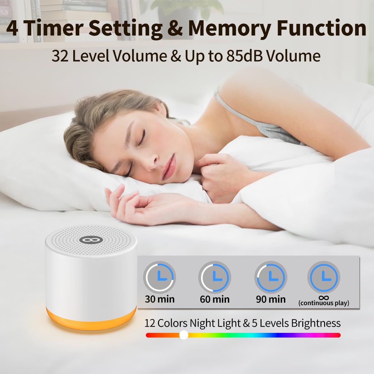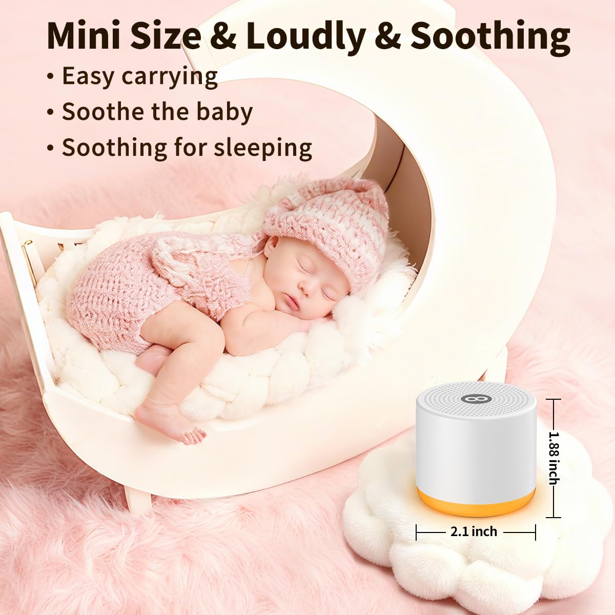 💐【Mini Size & Super Loudspeaker】The portable baby sound machine has the highest volume on the market for a mini sound machine, which can create a suitable atmosphere for baby, kids, adults and the elderly . And this baby sleep soother sound machine is pocket-sized and lightweight, which can be carried around to anywhere. It has fully functions with 30 soothing sleep sounds, 32 volume levels, timer setting, memory function, rechargeable battery and hanging rope, which is perfect for taking care of babies, travel, home or office.