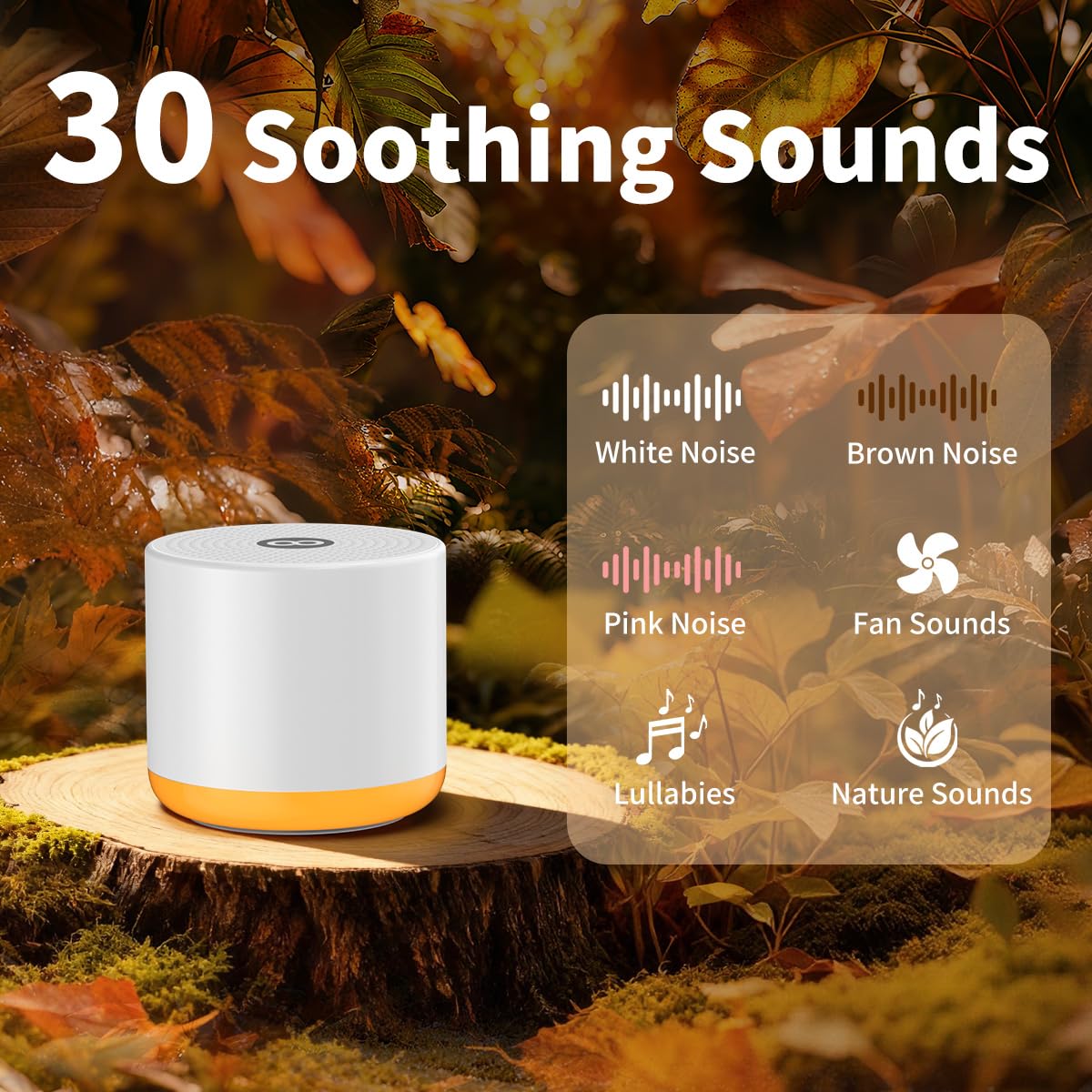 🎶【30 Non-looping Soothing Sounds for Your Different Needs】The mini baby sleep sound machine has white noise, brown noise, pink noise, fan sounds, rain, sea waves, singing birds, cricket, campfire, lullabies, piano, train and other nature or ambient sounds. It can block neighbor noise, urban traffic, street noise and animal calls, which can provide you a better environment for sleeping, relaxing, studying or working.
