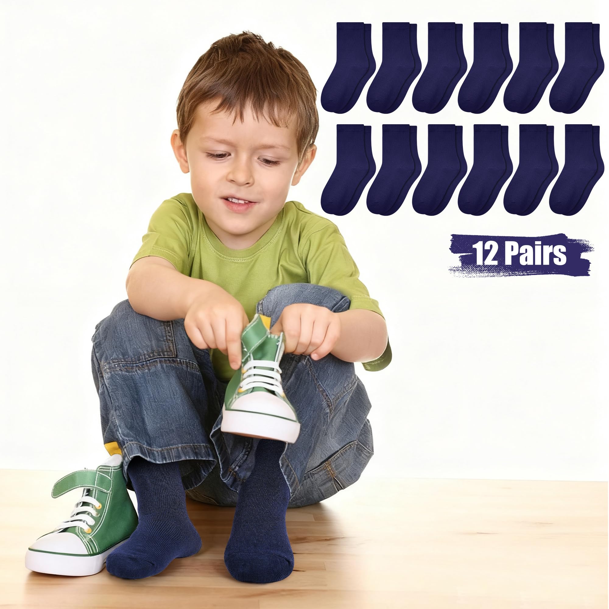 12 Pairs: Bulk mid-cut socks for kids. For your child’s easier wearing and replacement, the package includes 12 pairs of soft crew socks. The kids socks are machine & hand washable. With this 12-pair pack, you’re bound to always have a clean, fresh pair
