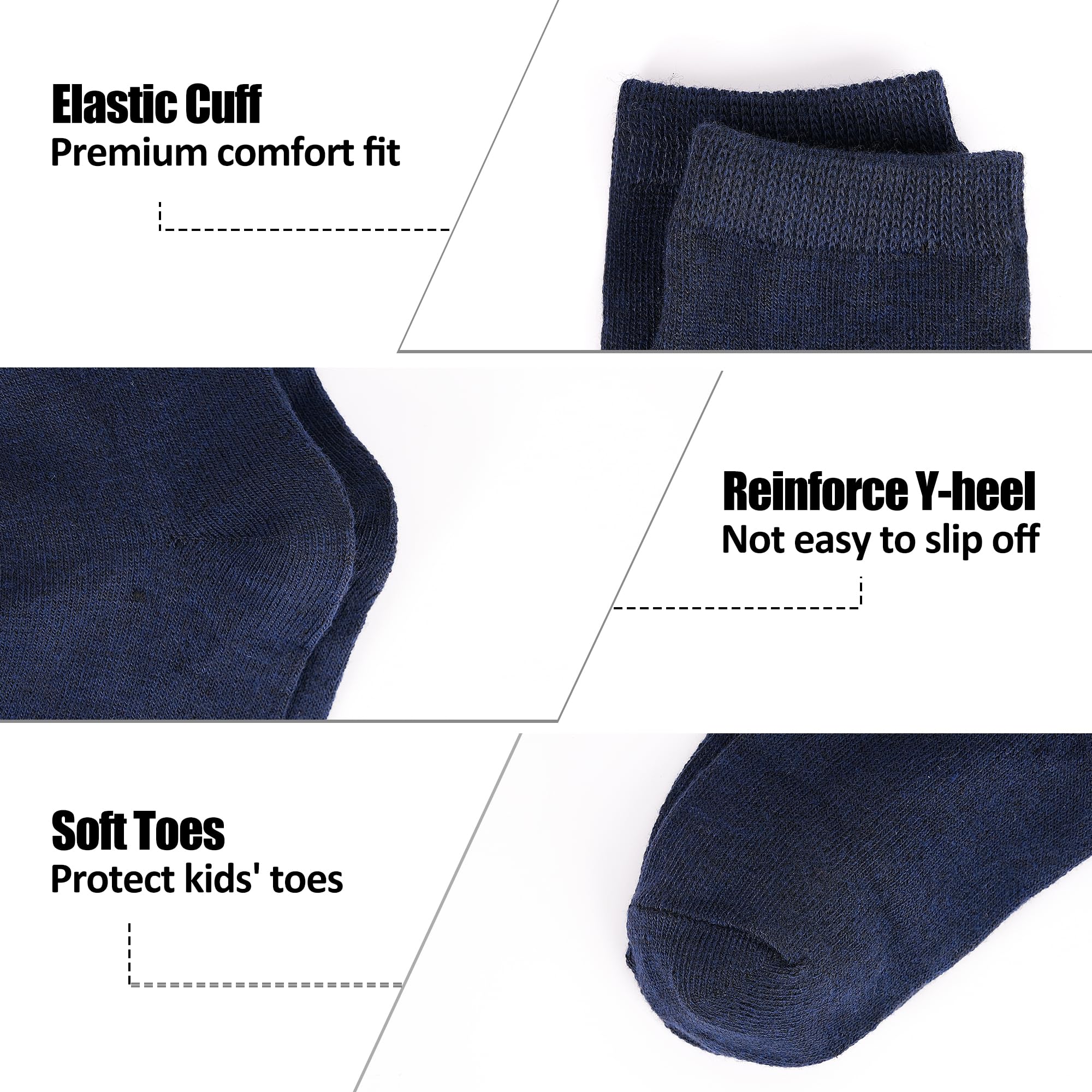Stretch For Better Fit: Appropriate elastic fabric ensures that athletic socks do not impede blood circulation and provide more flexibility and comfort for kids. The crew length design prevents the child's ankles from getting rubbed. Guaranteed to make kids have a good time in outdoor activities, school and at home