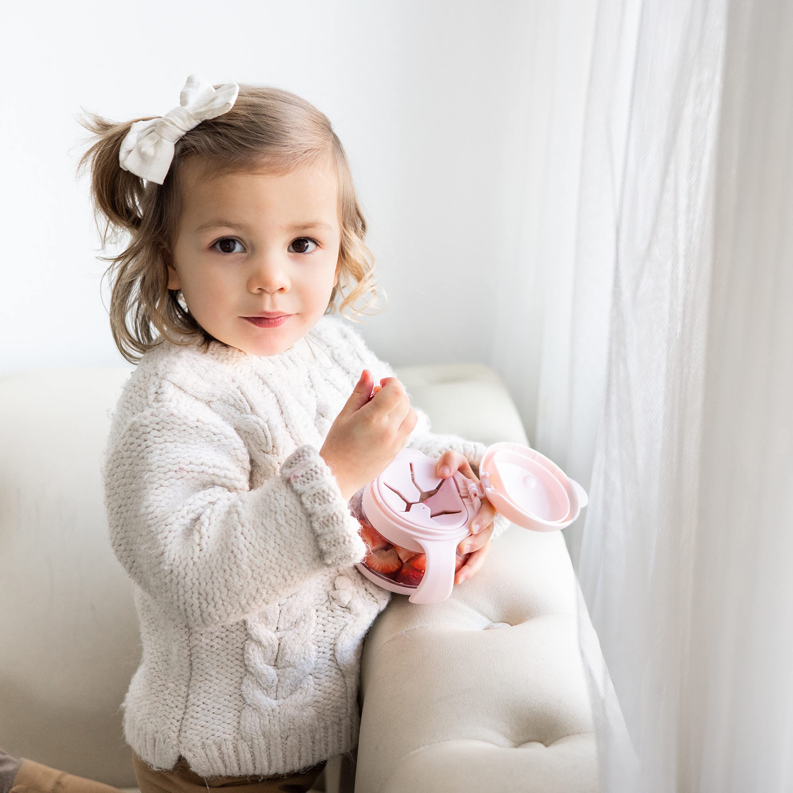 Encourages Independence: The large opening at the top encourages toddlers to independently grab snacks, promoting fine motor skills and self-sufficiency during snack time. The attached lid ensures the container stays closed when not in use.