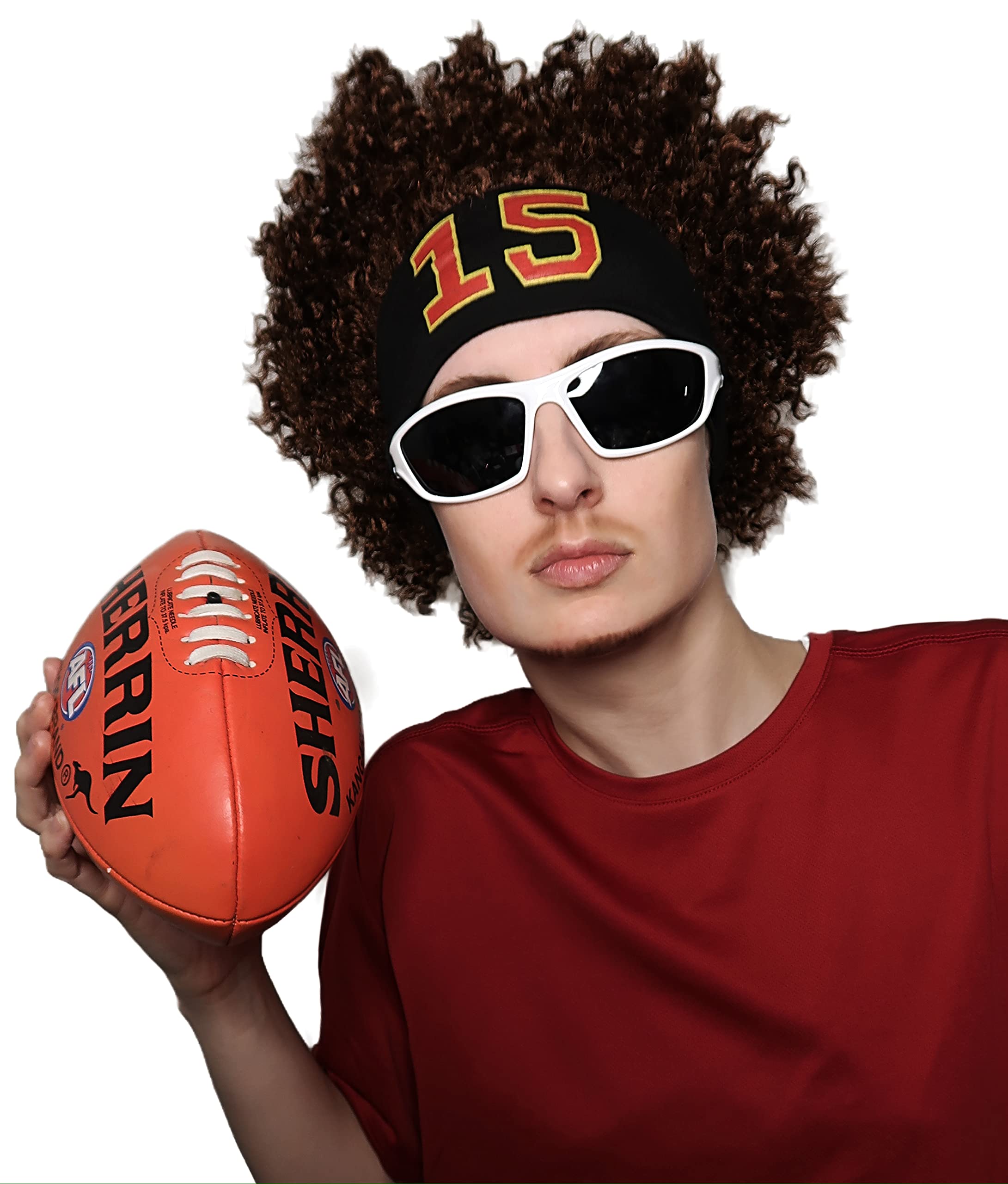 Complete Your Football Costume with Allaura Wigs Suitable for All Occasions… for fun and wacky entertainment; Perfect for fancy dress parties, Halloween, carnivals party, science theme costume party or imaginative classroom activities etc. Great for all parties — 80s 90s disco — halloween party— christmas party — office party — rock concert — punk show — heavy metal — mullet america look.