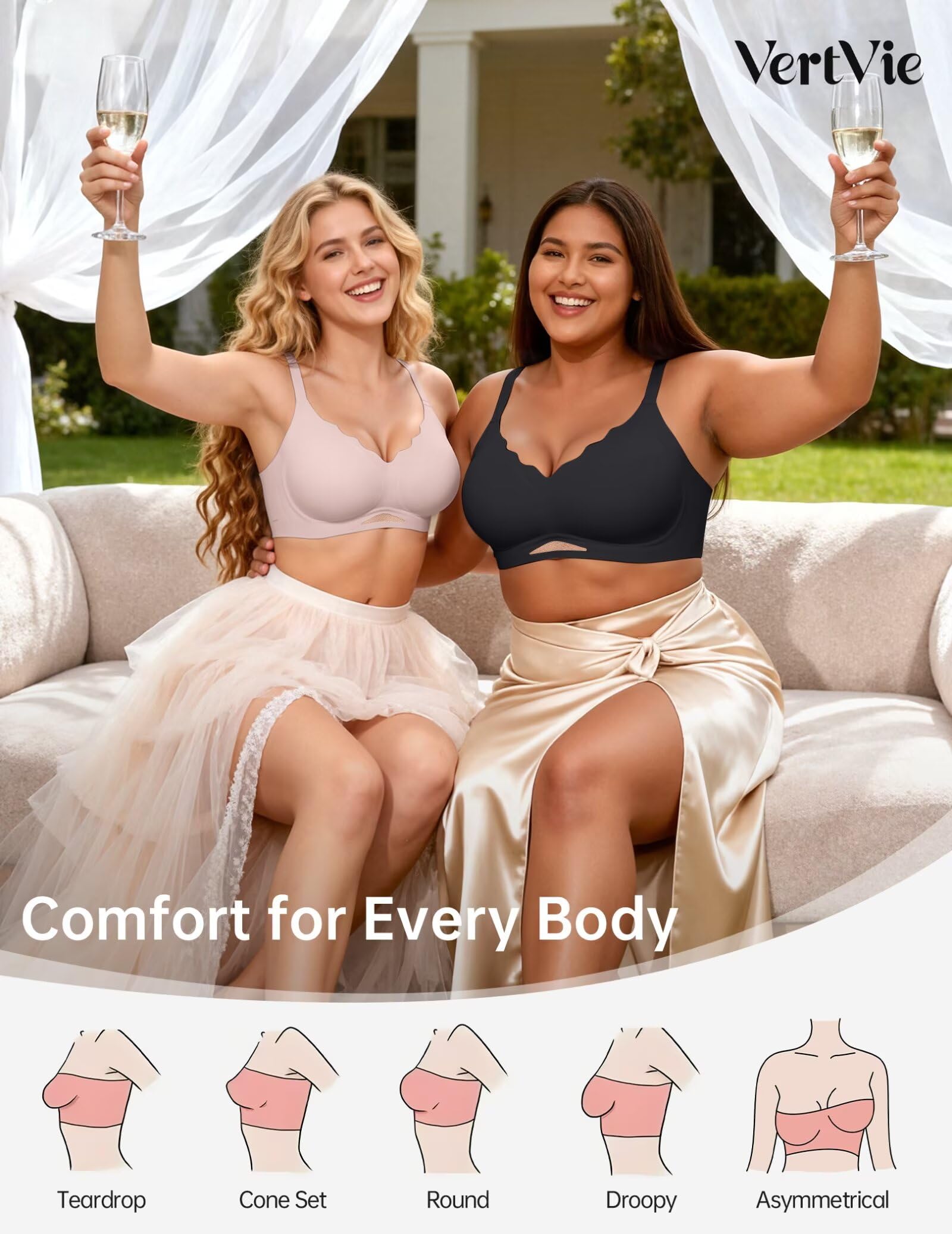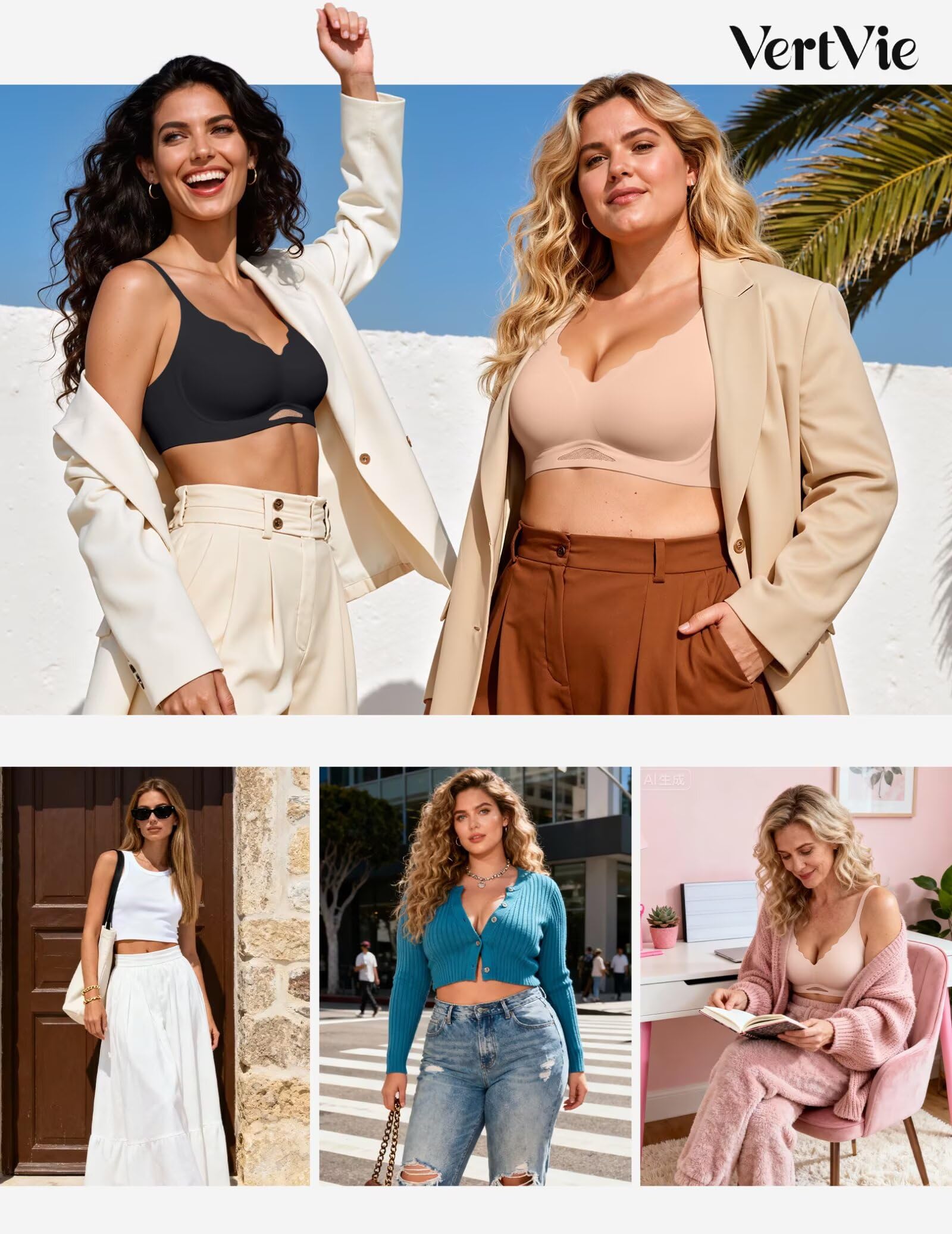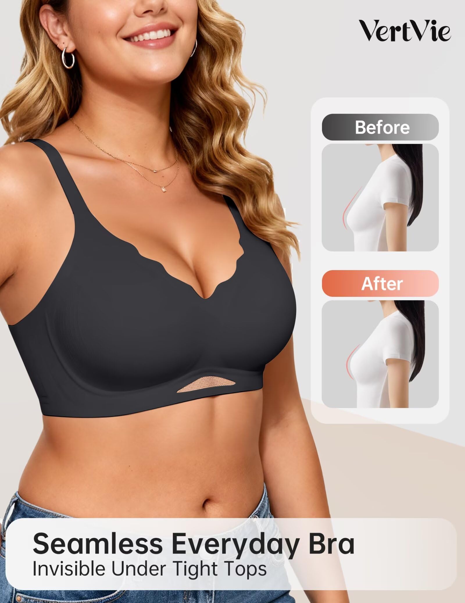 Comfy Soft Fabric: Upgraded with buttery soft, breathable, and stretchy fabric, this jelly wireless bra conforms to your body's curves, giving a second-skin feel. The stretch underband stays in place and won't roll up. Made with cutting-edge technology, this t-shirt bra offers a smooth, seamless fit that stays invisible under your clothes for a no-show look