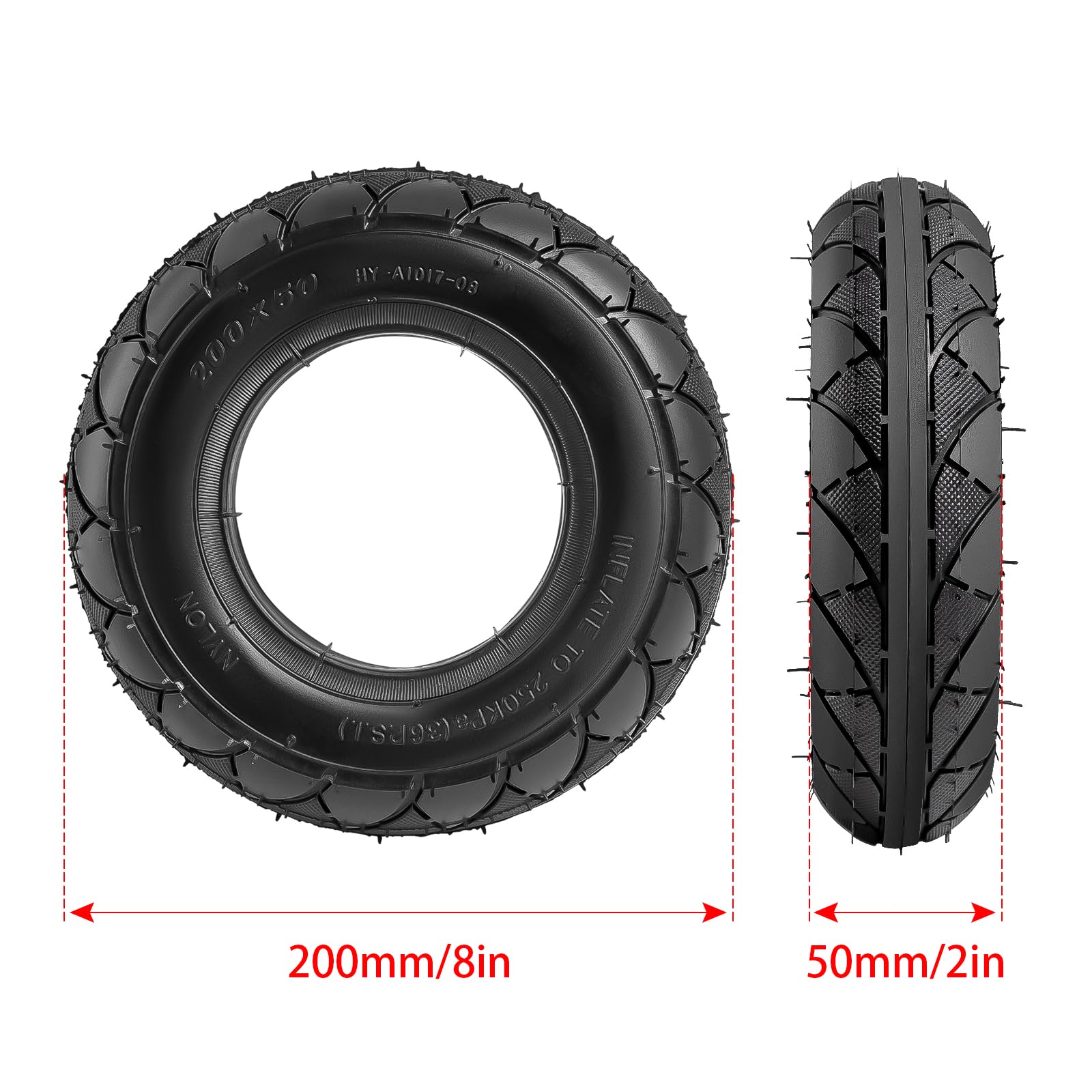More Comfortable to Your Ride: Heavy-Duty 200x50 Tires feature high rubber content (40%), 4-layers of nylon reinforced, and upgraded 9-strand bead chafers. These features prevent bulging and make the tire explosion and shock-proof, allowing you to easily over the speed bumps while riding and effectively cope with rough roads