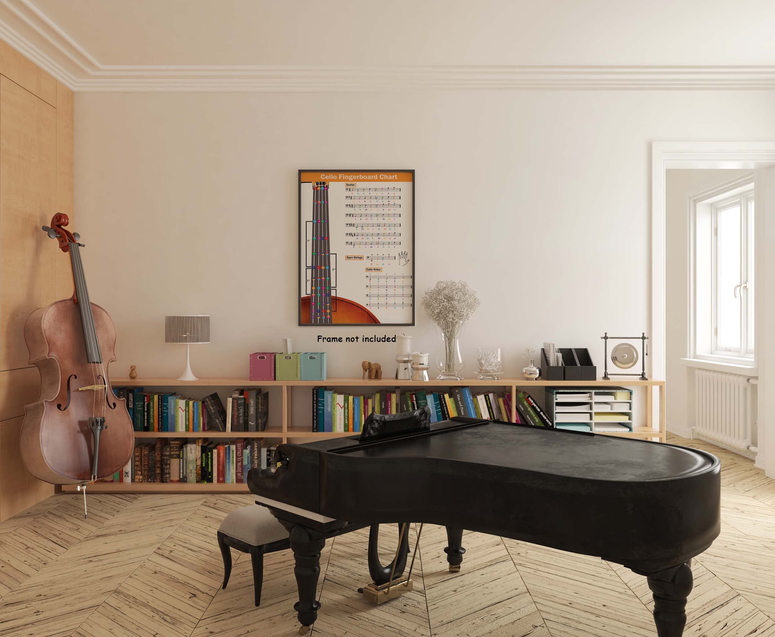 COLOR-CODED NOTES: This Cello fingering chart features color-coded notes to help beginners remember the finger positions. The easy-to-follow design makes this Cello fingering chart convenient, especially for visual learners.
