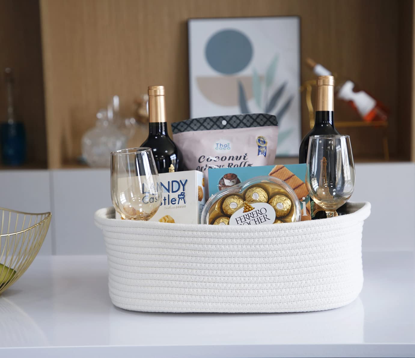 VERSATILE STORAGE SOLUTION - The storage basket good to use for gift baskets empty and in Entry to hold Keys, Wallet, or similar when get home from out. also good use it on Dinner table or Coffee table. Make your home organized and orderly