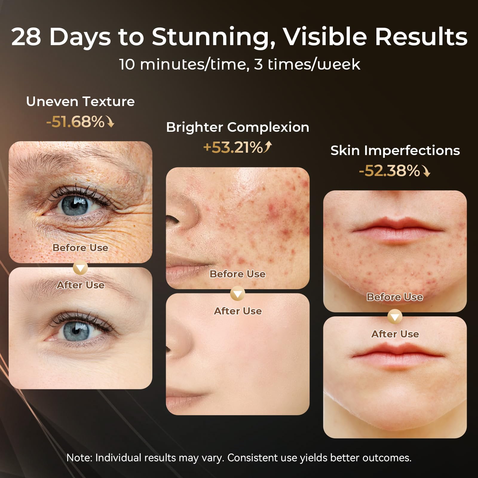 【Premium Quality Materials & Convenient】Crafted with high-quality, skin-friendly Soft Silicone materials, our LED face mask light therapy ensures comfort and durability. The lightweight design and added eye masks provide a perfect fit.With a handy portable storage bag, making it simple to pack away and take your infrared light therapy on the go.The Time Button allow you to adjust the timer to 10, 20 or 30 minutes. For optimal results, use 3 times a week, with each session lasting 10 minutes.