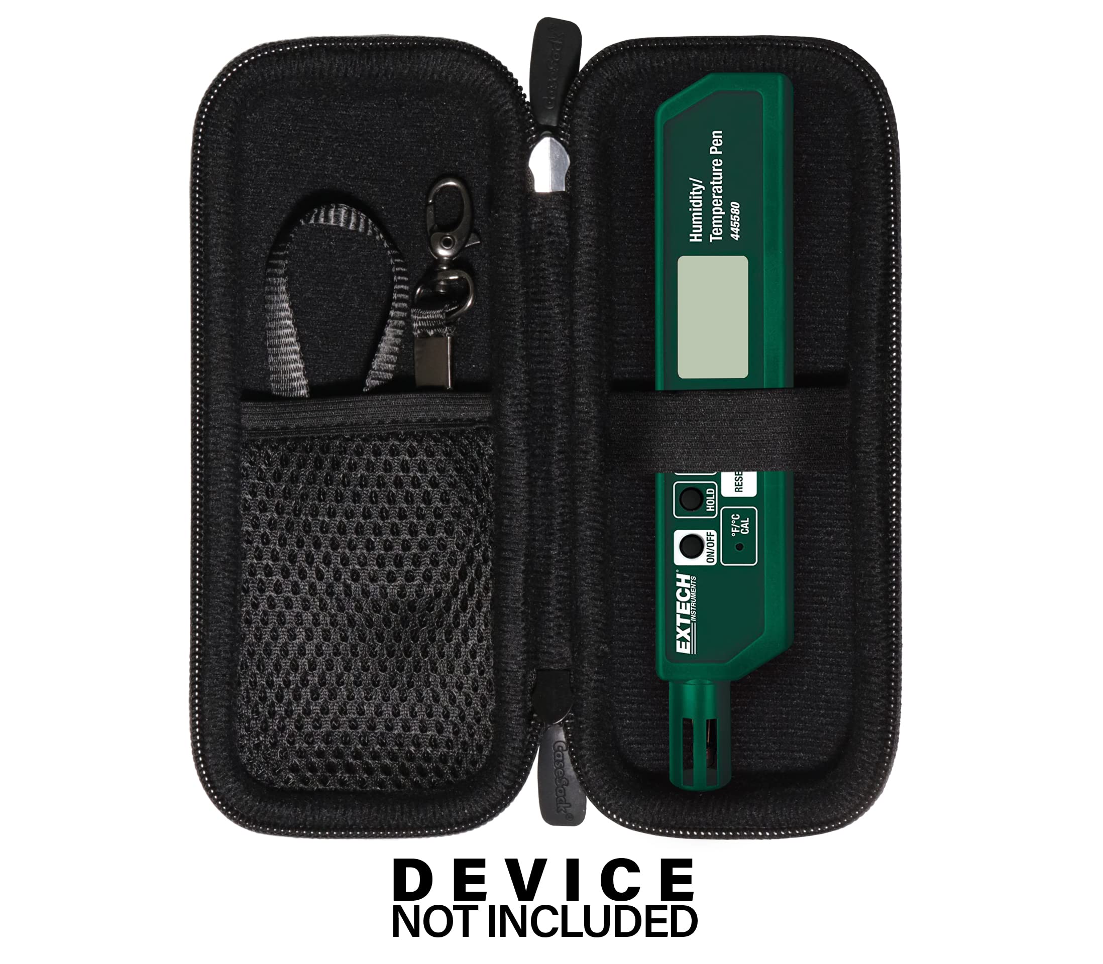 Description CaseSack Case for Humidity and Temperature Pen Sized Meter compatible with Extech 445580, TH10, RTH10 Travel organizing case with excellent protection with mesh pocket for back up battery and/or other small accessories Better organizing and protecting case for easy carrying Shockproof Case with soft lining interior, The antistatic, shock absorbing Strong Semi-hard zipper case giving best solution for Carrying and Storage protection Note: zipper case only, device for illustration only