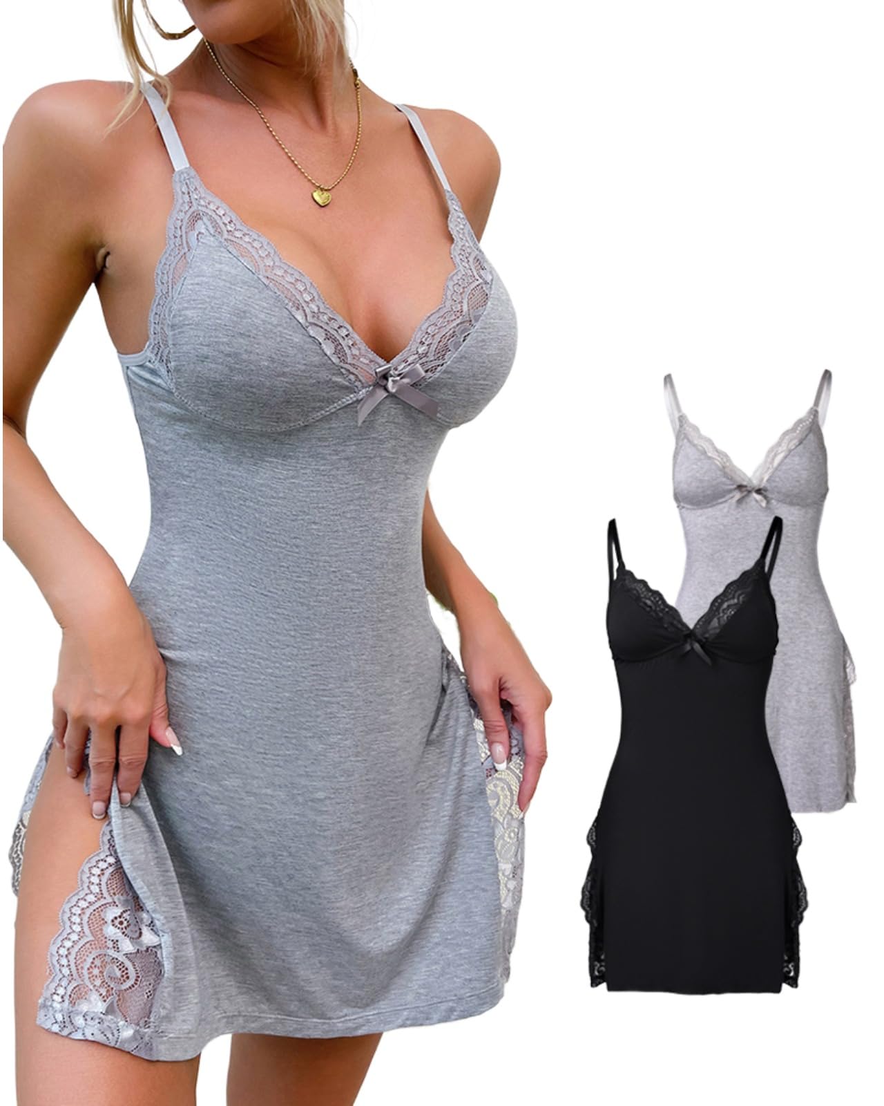 Charming Side Slit & Lace Details – Designed with contrast lace trim and side slits, these cute nightgowns create a flattering and alluring look, ideal for all seasons