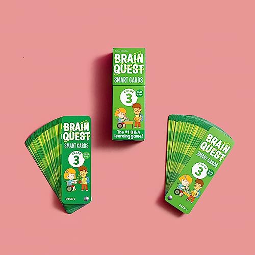 Itβs fun to be smart! Now updated with a technology section, this set of two multi-subject card decks will make learning exciting for third graders everywhere. Loved by kids, teacher-approved, and featuring hundreds of fast-paced questions and answers based on math, language arts, science, social studies, and more to reinforce classroom learning. Brain Quest 3rd Grade Smart Cards helps kids aged 8 β 9 to learn core classroom subjects in a smart, entertaining, and engaging way. Itβs Q&A fun that third graders can use to test their knowledge. Smart cards feature hundreds of questions with answers to help kids know exactly what they need to know, when they need to know it. Featuring: Two full-color Q&A decks in a reusable flip-top storage box 1,000 questions and answers covering math, language arts, science, and more Whatβs New? Technology questions that cover computer science, coding, and technology Updated content new and revised questions that include recent key cultural and historic events Revised historical content with a focus on balance, diversity, and conscious language Brain Quest decks are: Aligned with common core state standards Vetted by award-winning teachers Great for travel and fun on the go Also available: Brain Quest Workbooks (Pre-Kindergarten through 6th Grade) and Summer Workbooks (Pre-Kindergarten-Kindergarten through 5th-6th Grades)